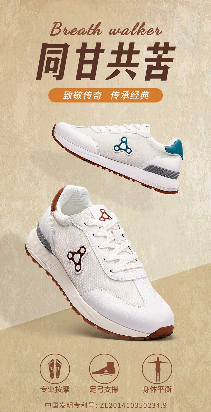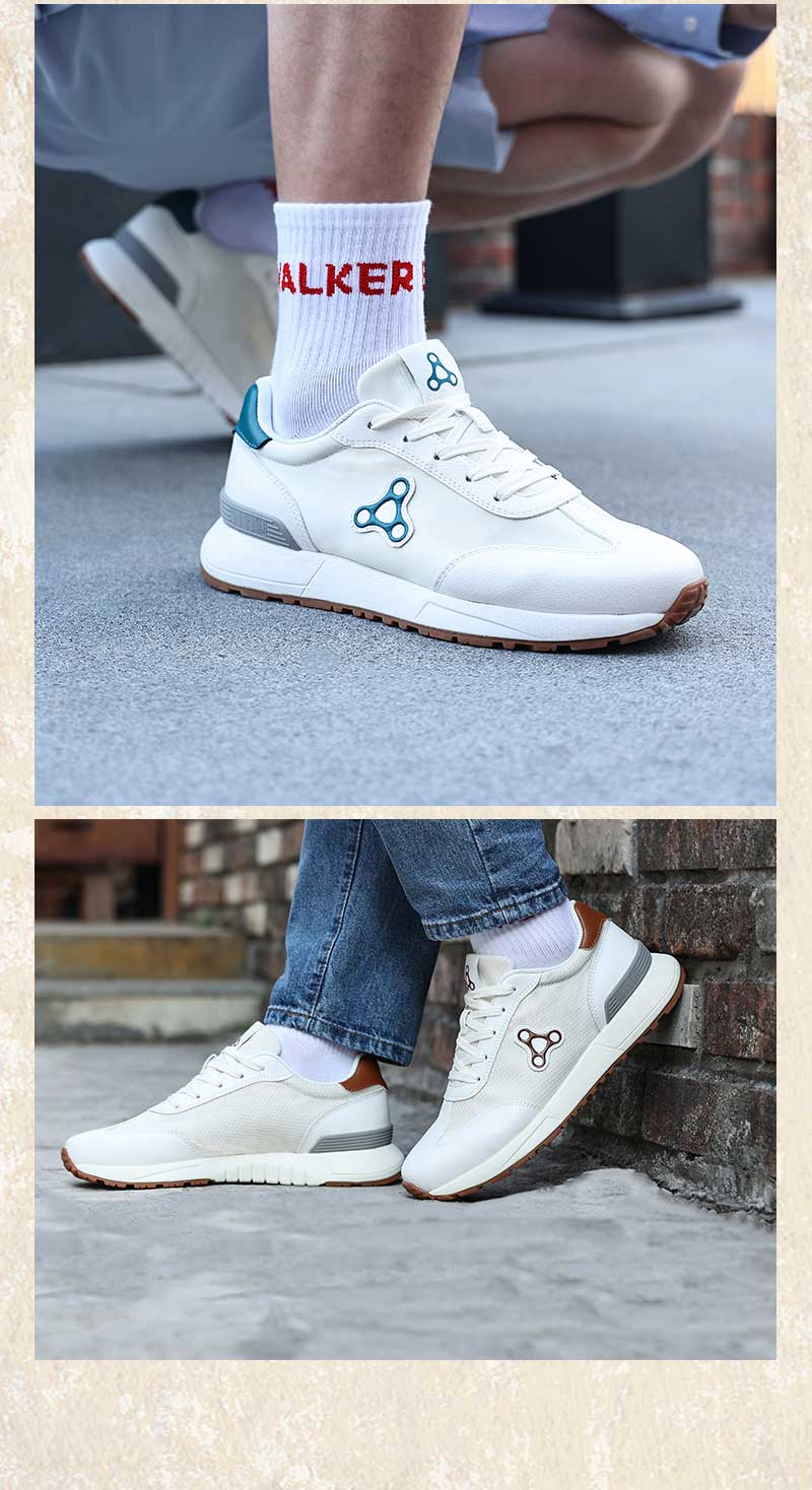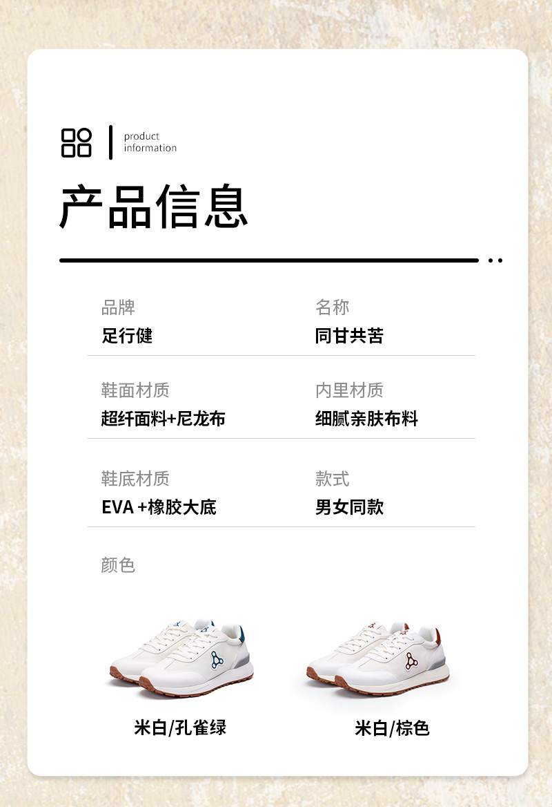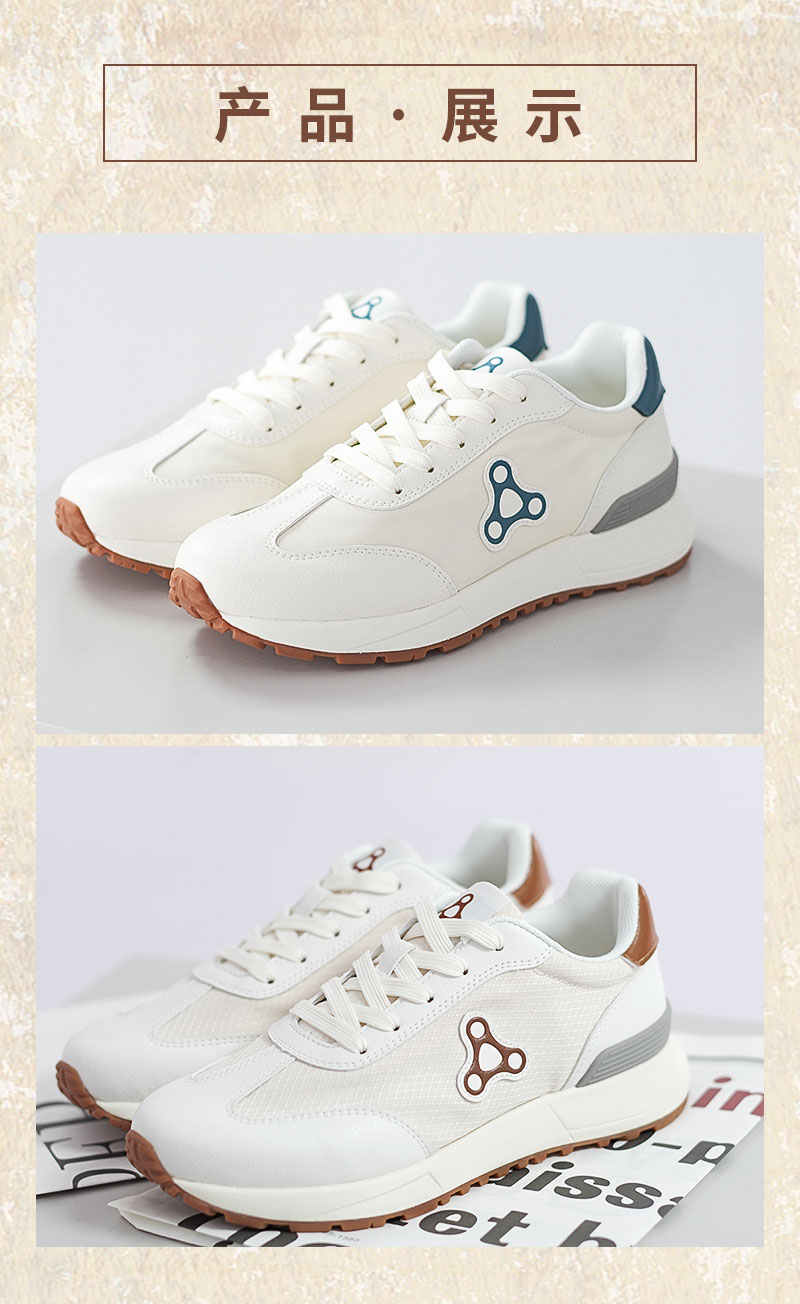 足行健按摩鞋足弓支撑春季阿甘鞋百搭休闲轻便拼色厚底情侣款鞋子-同甘共苦 单位:双 米白/棕色 35