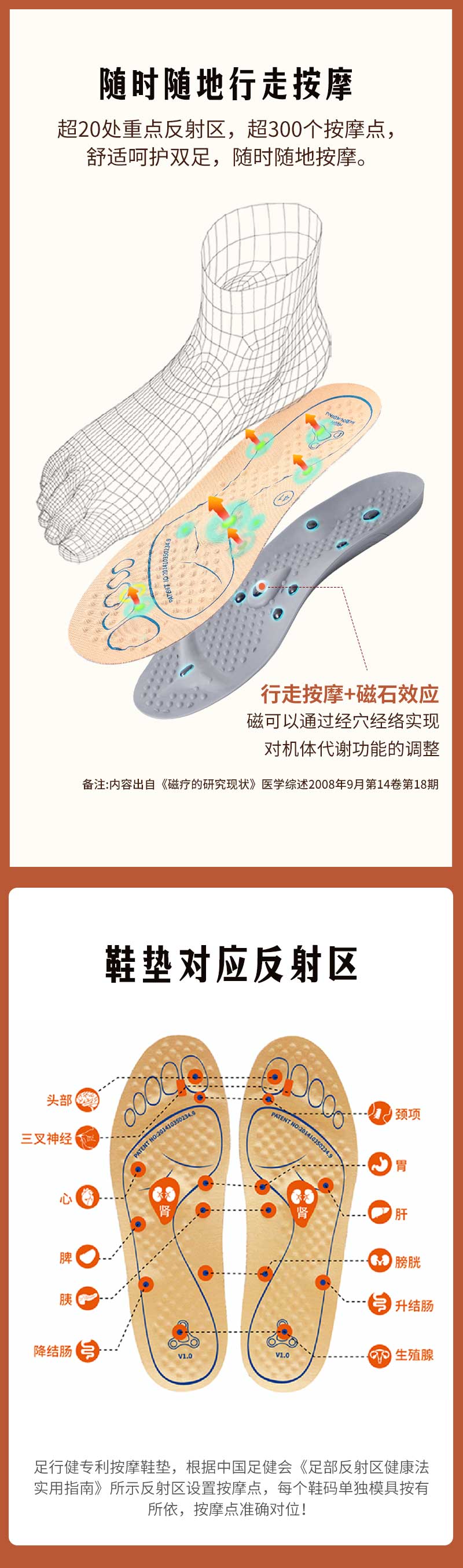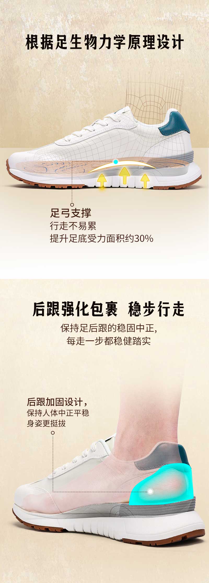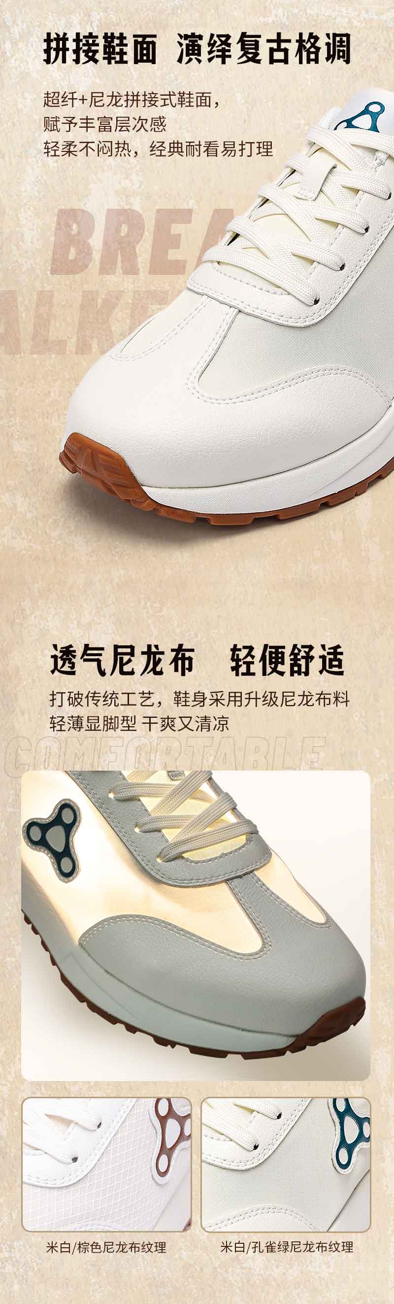 足行健按摩鞋足弓支撑春季阿甘鞋百搭休闲轻便拼色厚底情侣款鞋子-同甘共苦 单位:双 米白/棕色 35