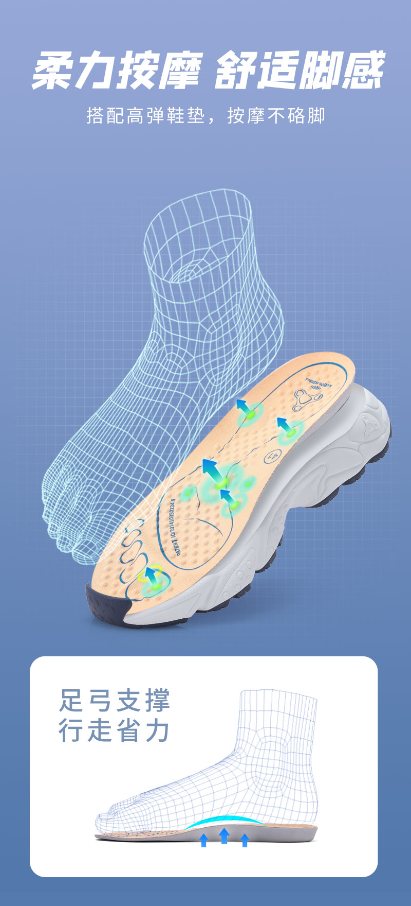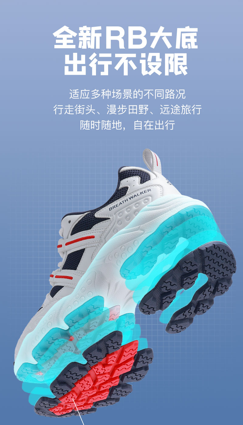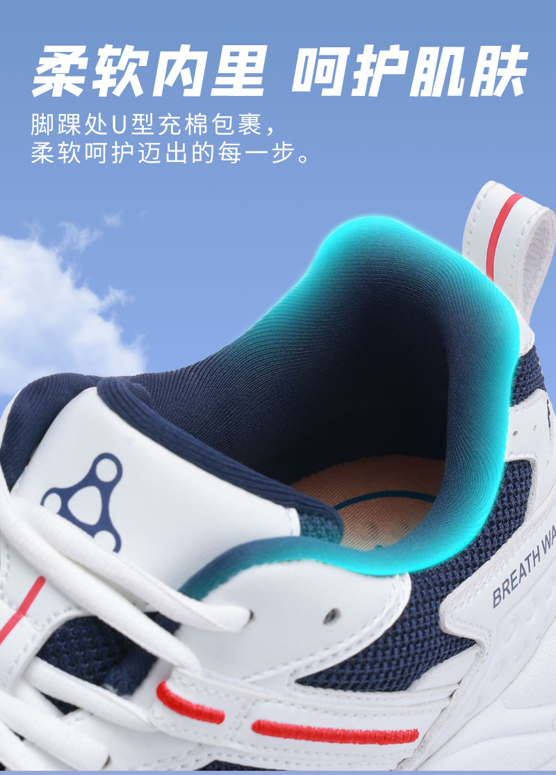 足行健按摩鞋足弓支撑春季青中年网面透气情侣款运动鞋-耳目一新 单位:双 白/海军蓝 42