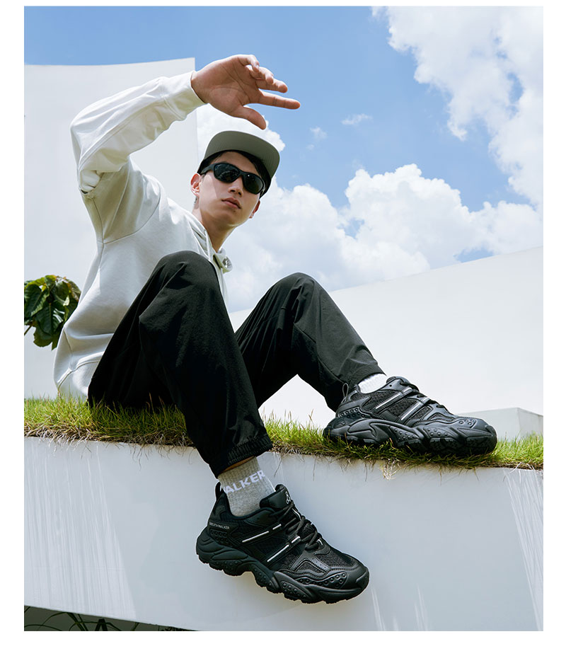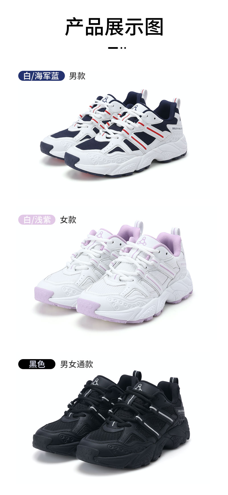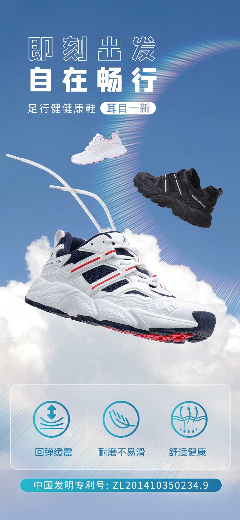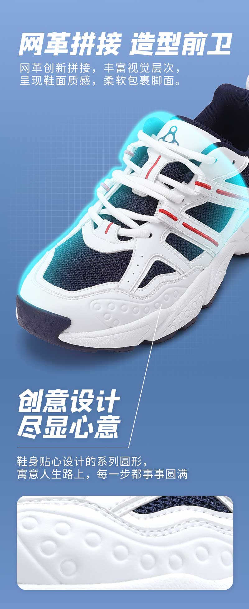 足行健按摩鞋足弓支撑春季青中年网面透气情侣款运动鞋-耳目一新 单位:双 白/海军蓝 42