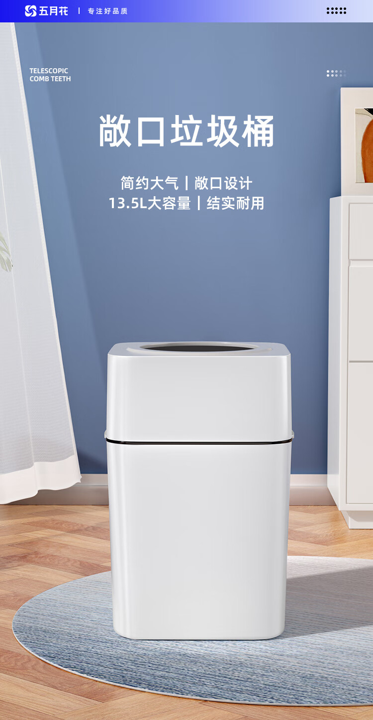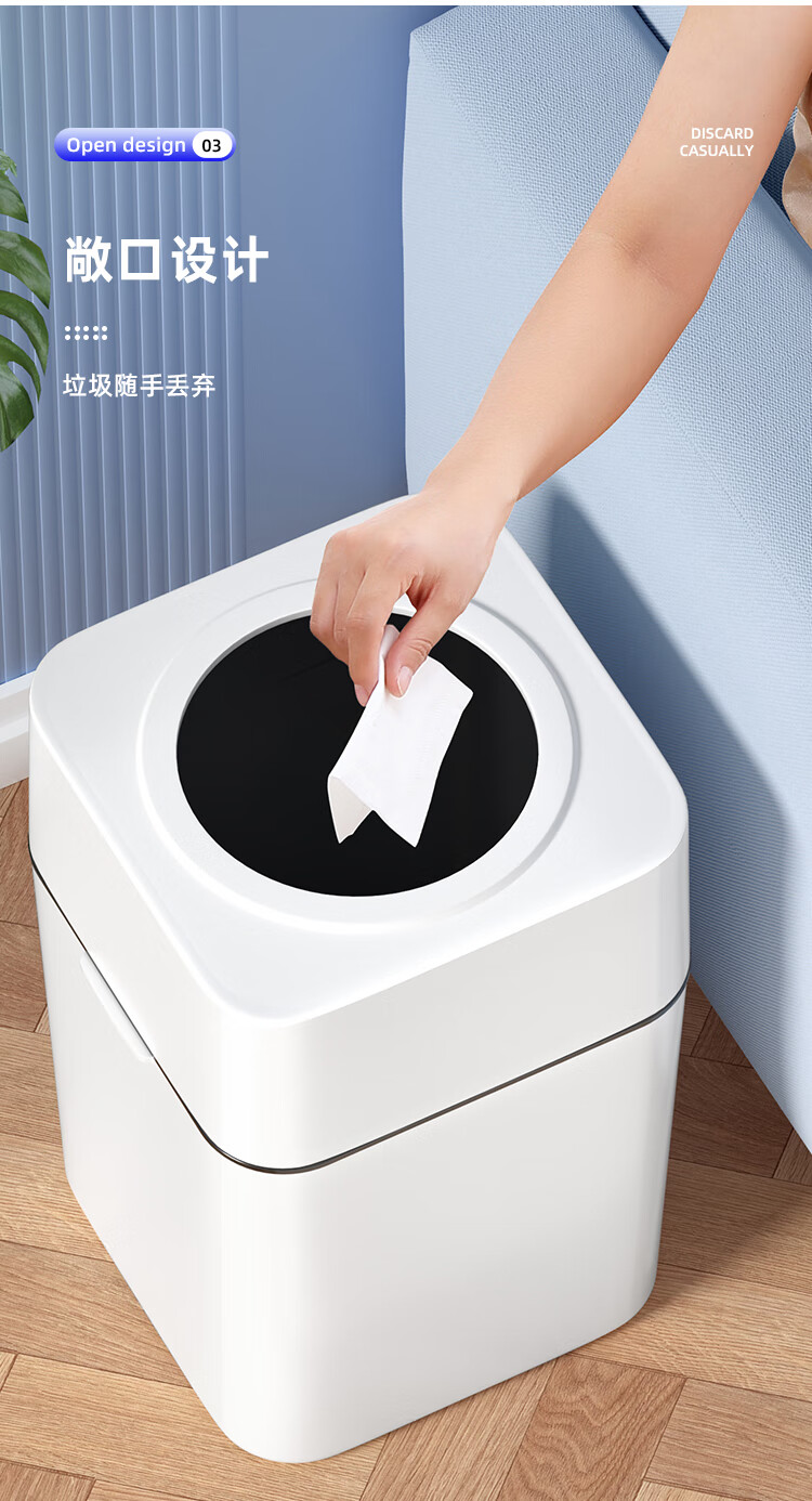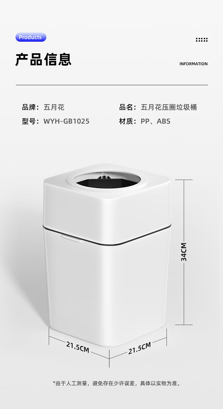 五月花家用压圈垃圾桶13.5L厨房客厅办公高颜值百搭 WYH-GB1025(单位:个) 白色