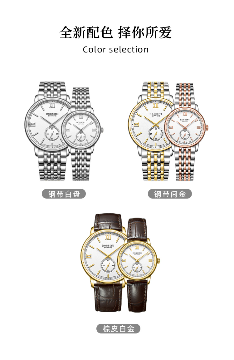 Rossini罗西尼 石英手表情侣款间金钢带男表50185T01B(单位1块) 金色