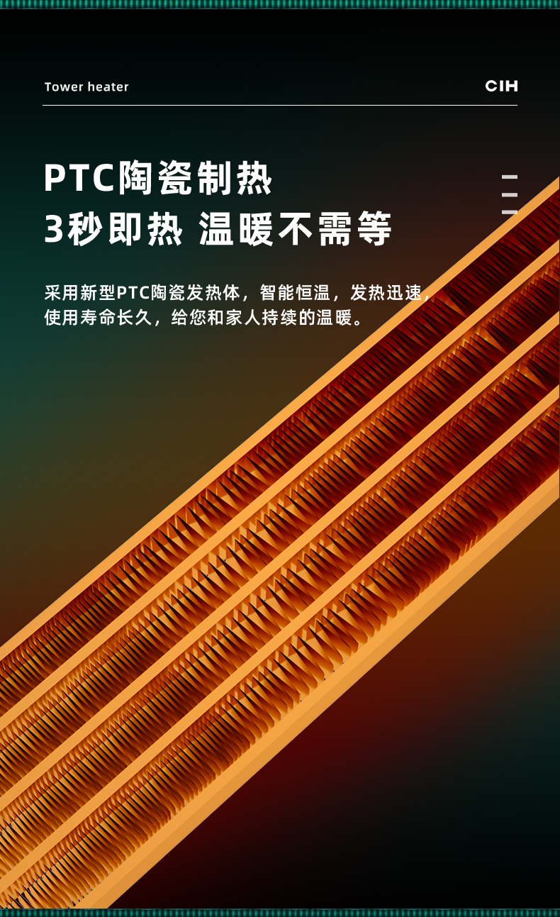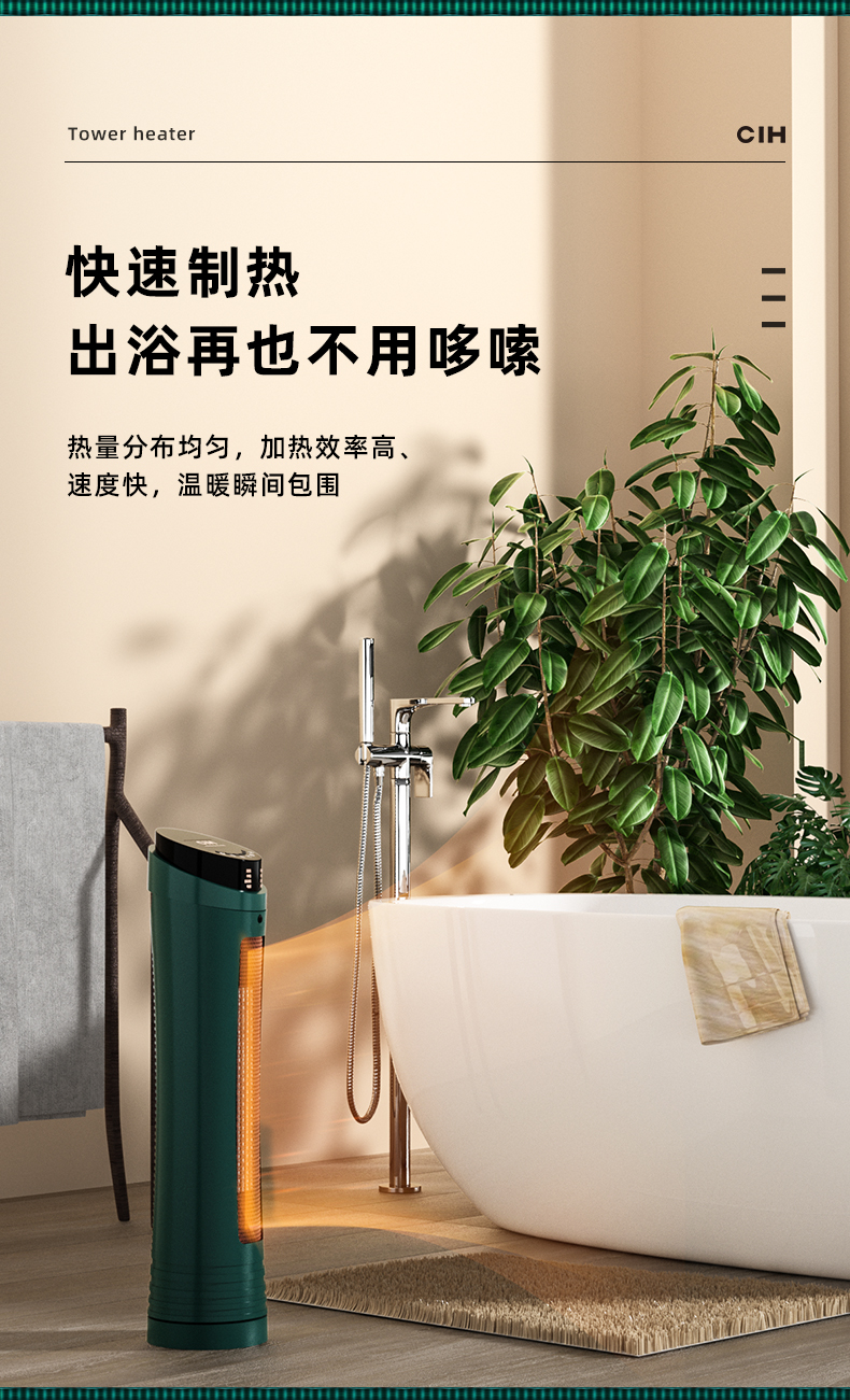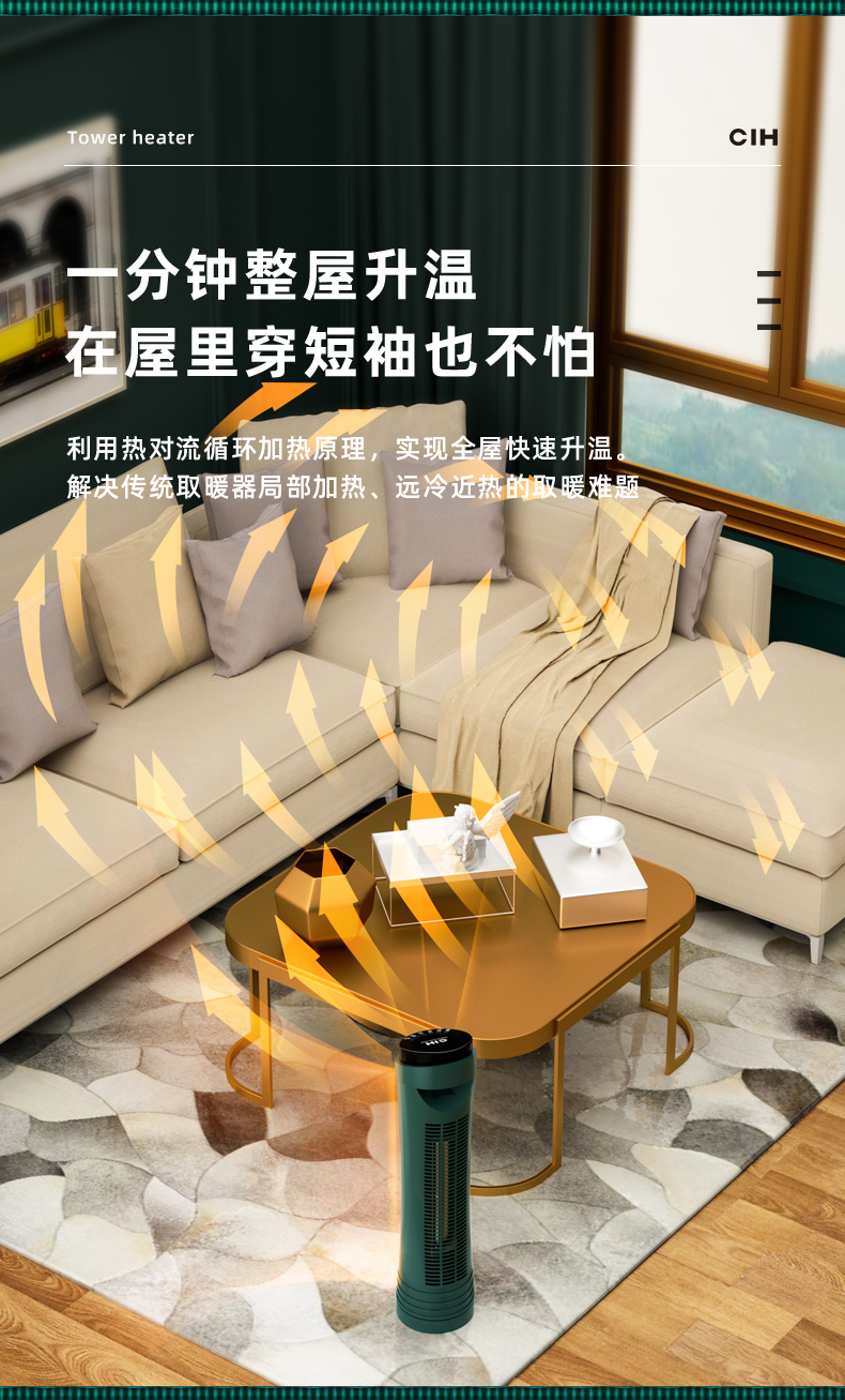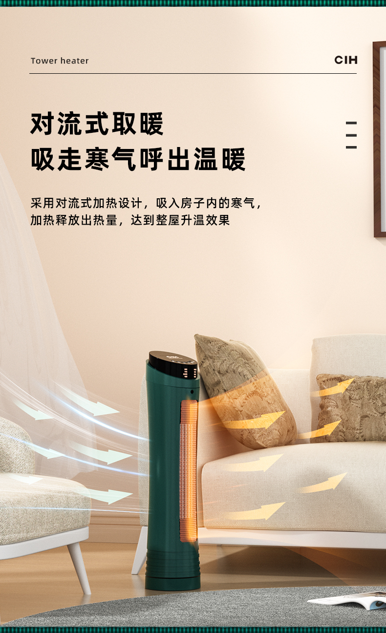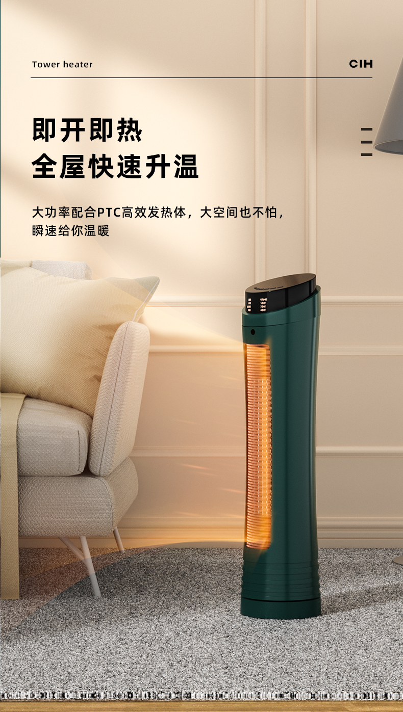 CIH 取暖器家用暖风机办公室立式速暖恒温电暖气(单位:台)PTH2501 绿色