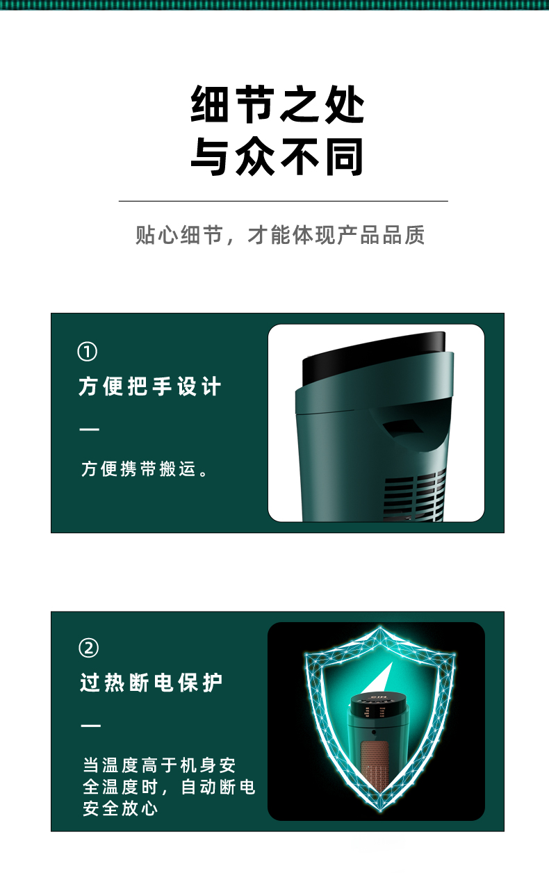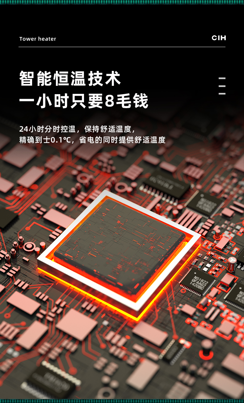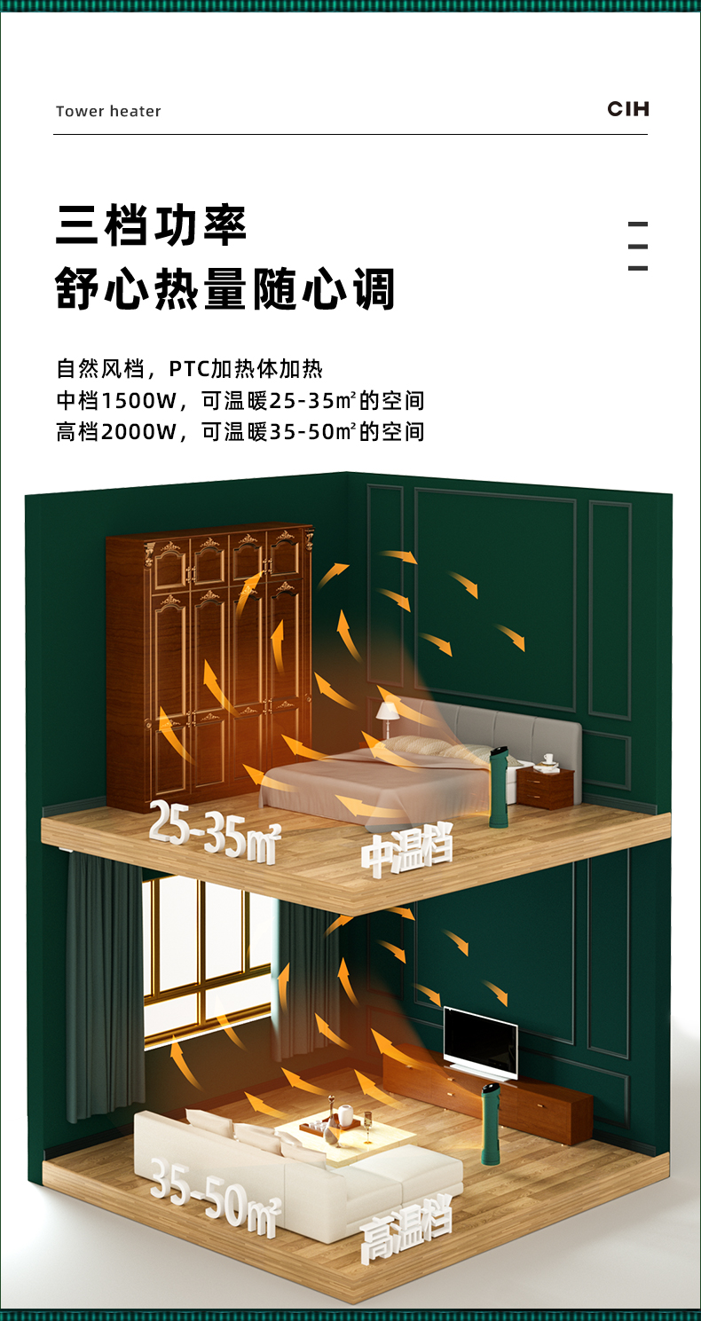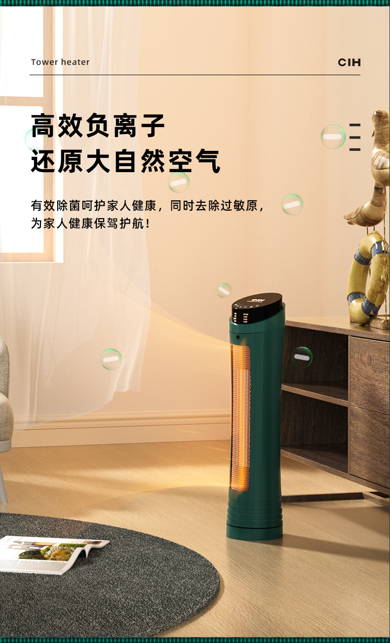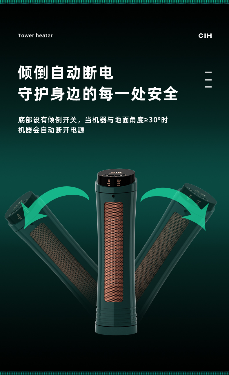 CIH 取暖器家用暖风机办公室立式速暖恒温电暖气(单位:台)PTH2501 绿色