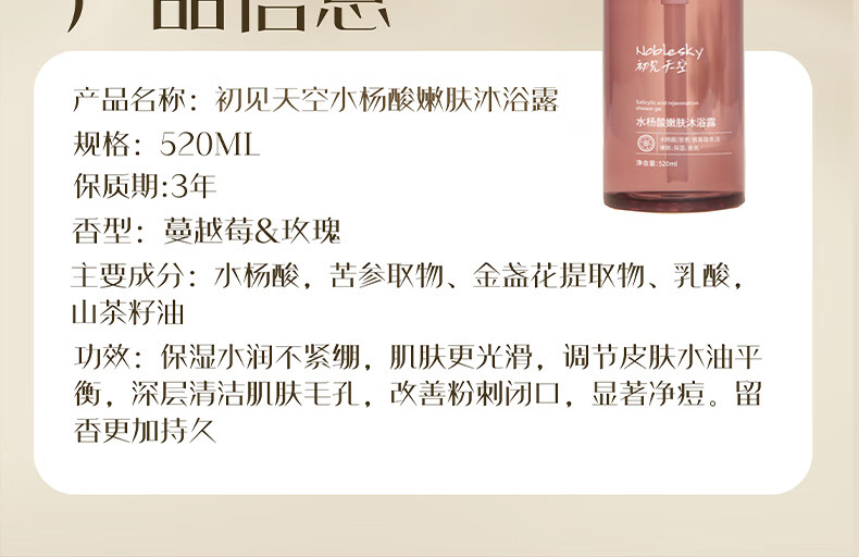 初见天空水杨酸嫩肤沐浴露520ml(单位:瓶) 玫瑰红色