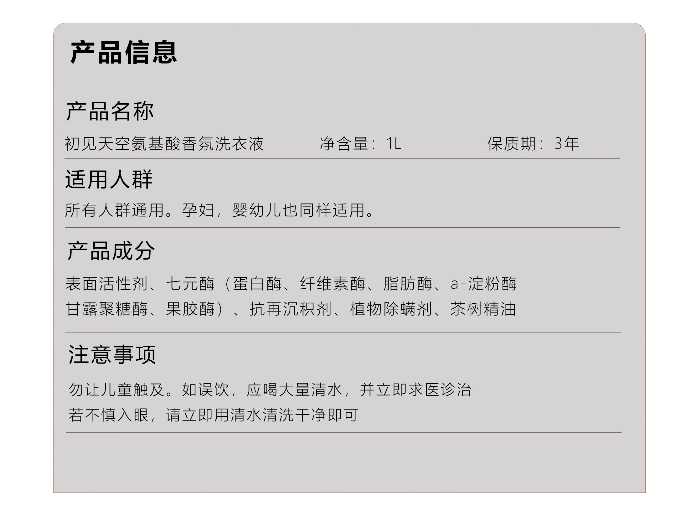 初见天空氨基酸洗衣液慵懒周末1L(单位:瓶) 白色