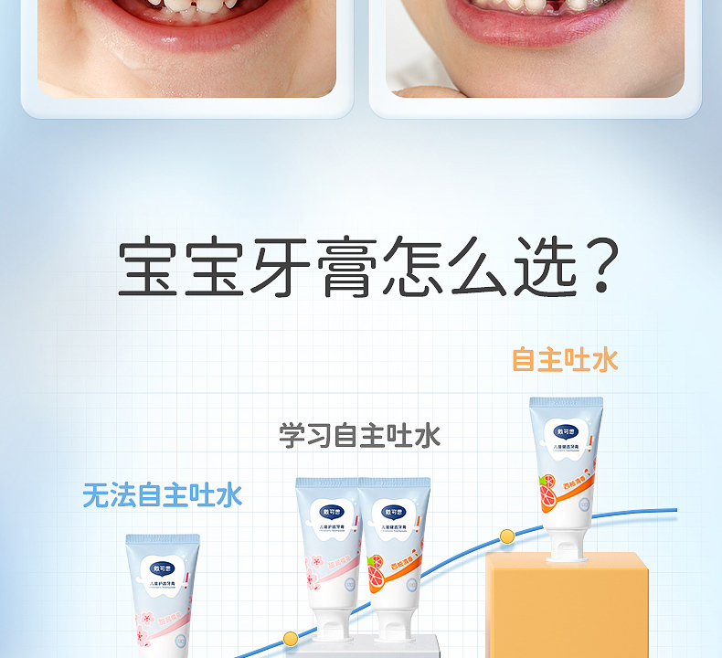 戴·可·思婴童分龄牙膏组套樱花味50g+西柚味50g含软毛牙刷1支 单位:支 蓝橙色