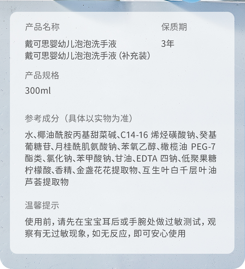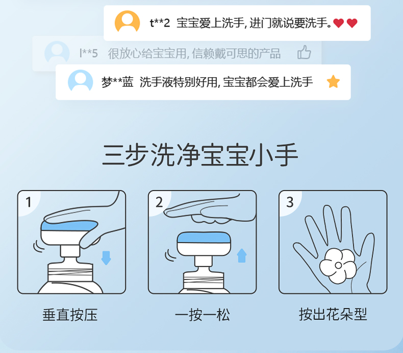 戴·可·思儿童宝宝花朵植物泡沫洗手液300ml+补充装300ml 单位:组 浅蓝色