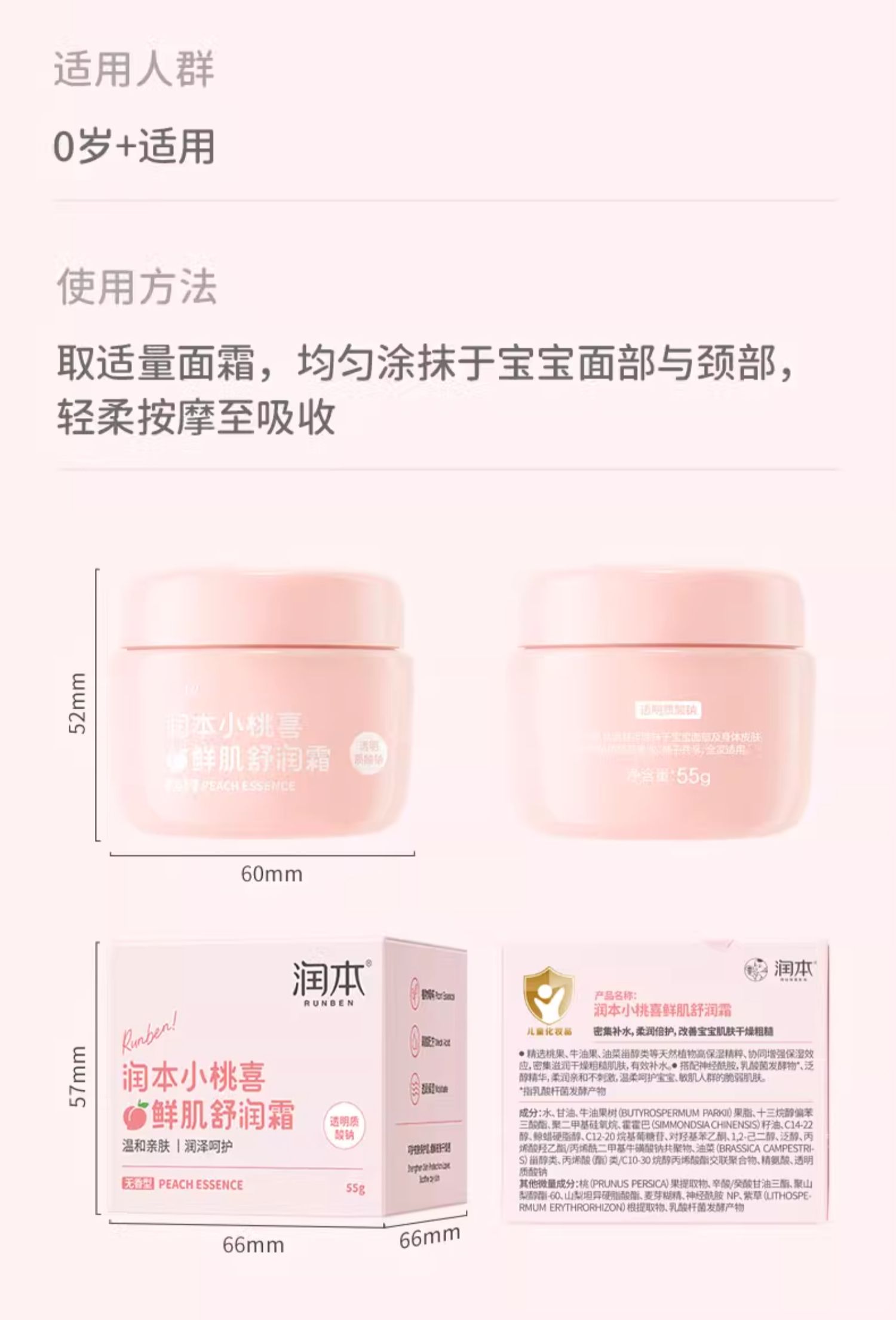 润本小桃喜鲜肌舒润霜55g 单位:瓶 粉色