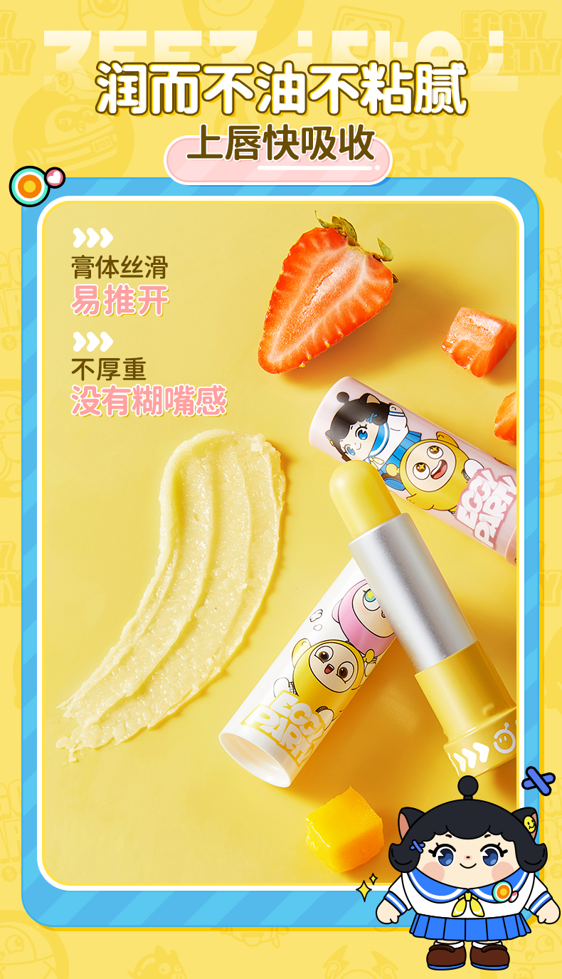 润本儿童蛋黄油润唇膏4.2g×2支 芒果味+草莓味 单位:支 黄色