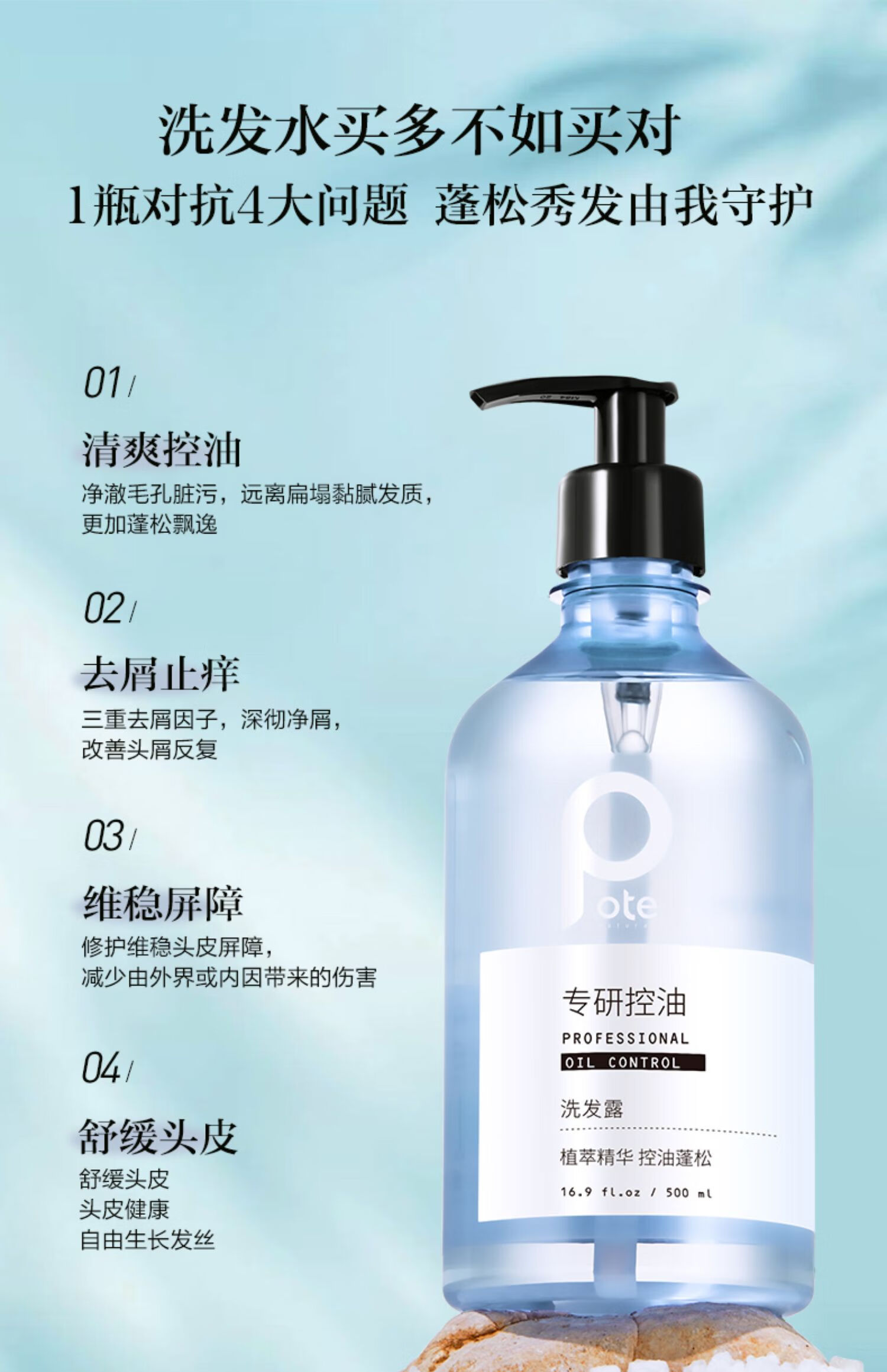 柏缇 洗发水 500ml 海盐专研控油洗发露 深蓝色(单位:瓶)