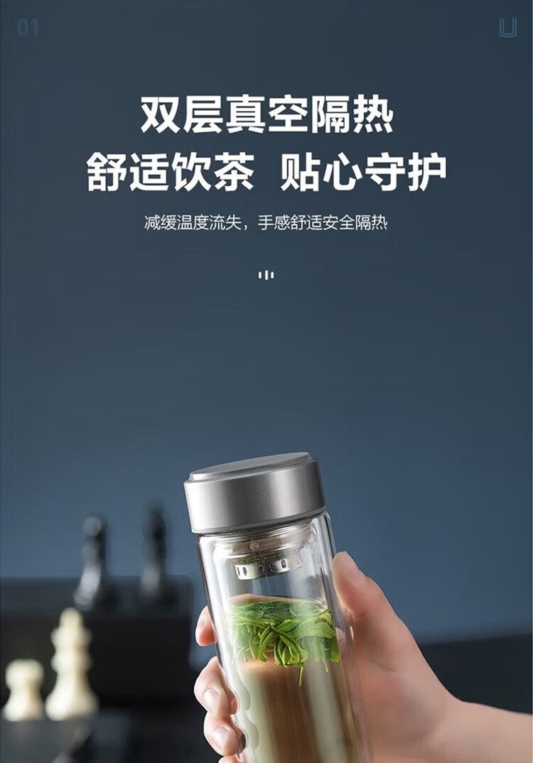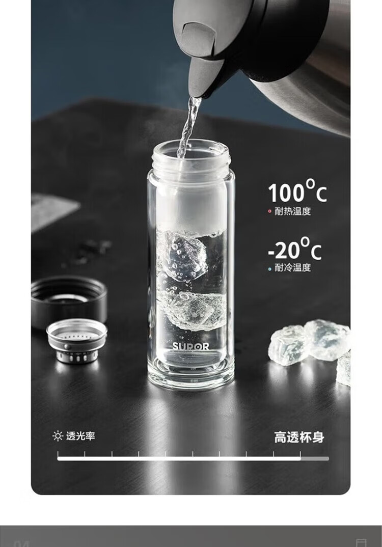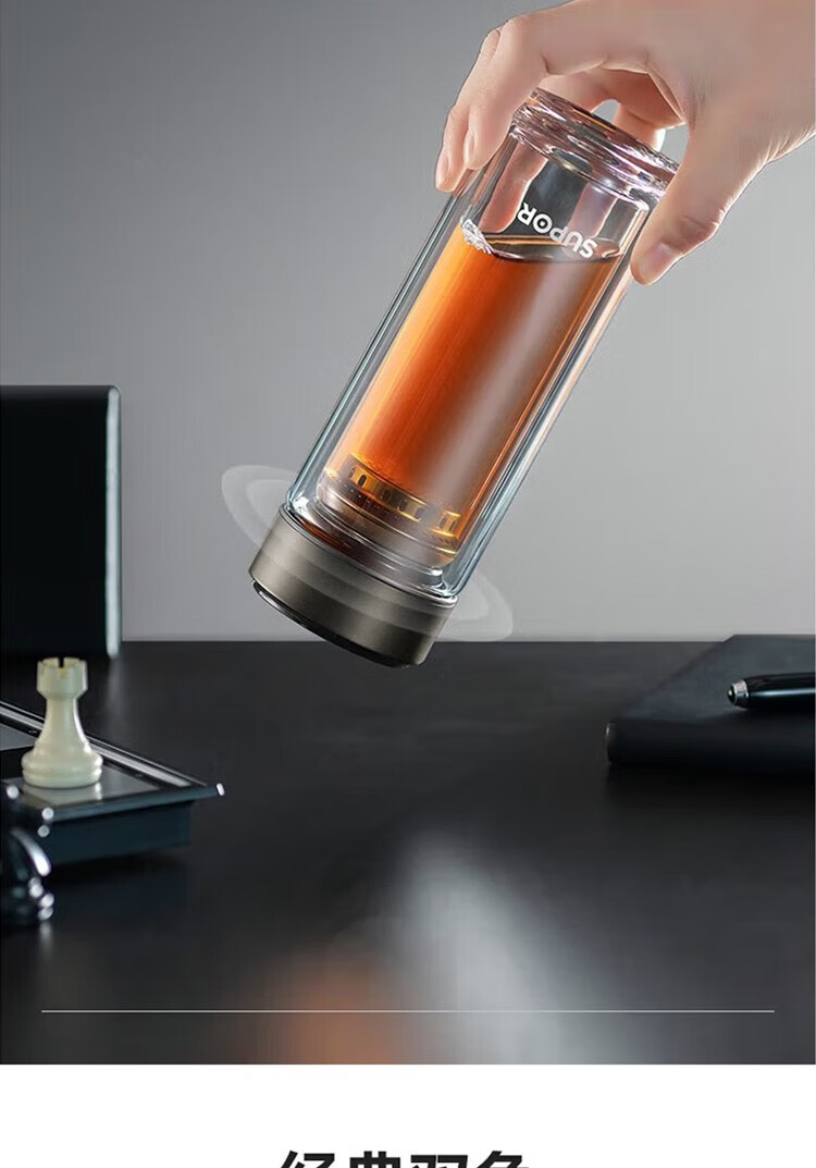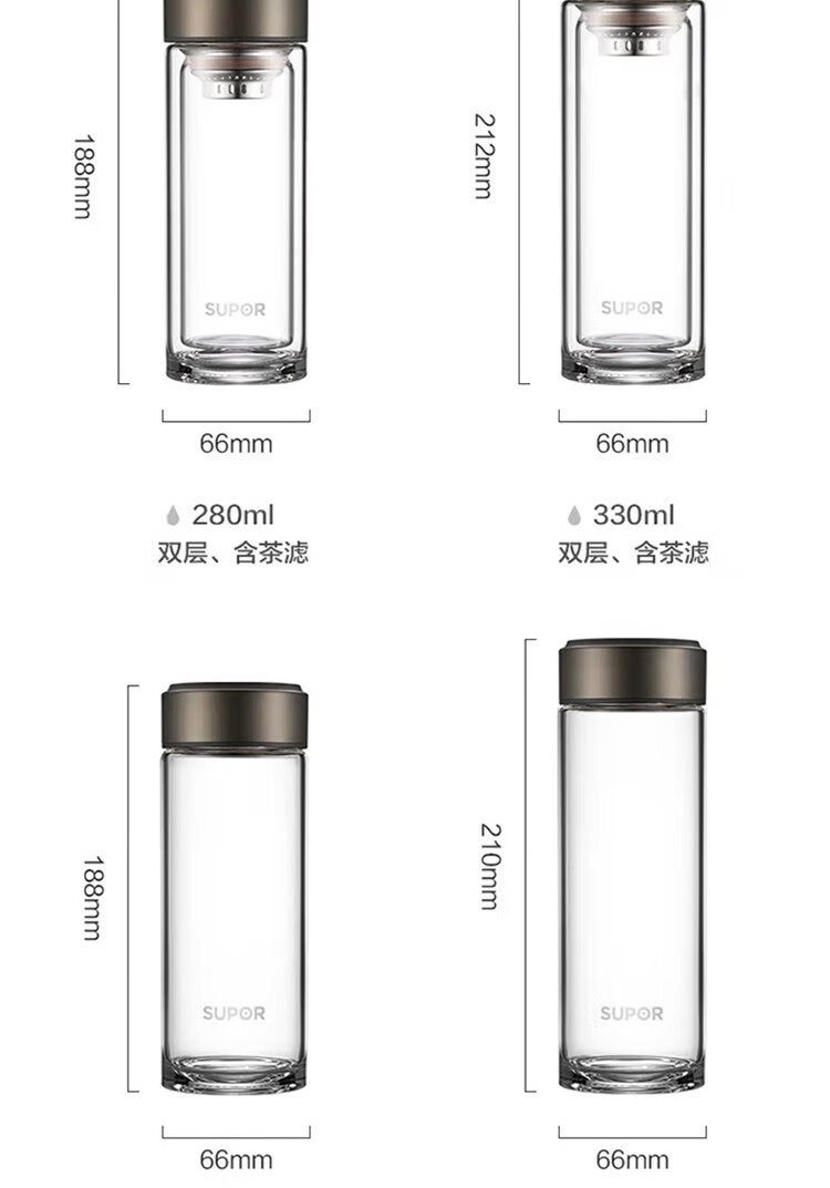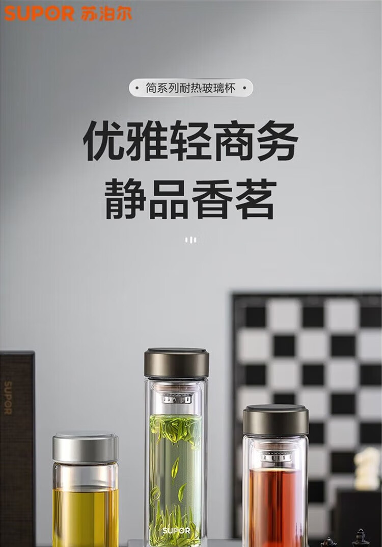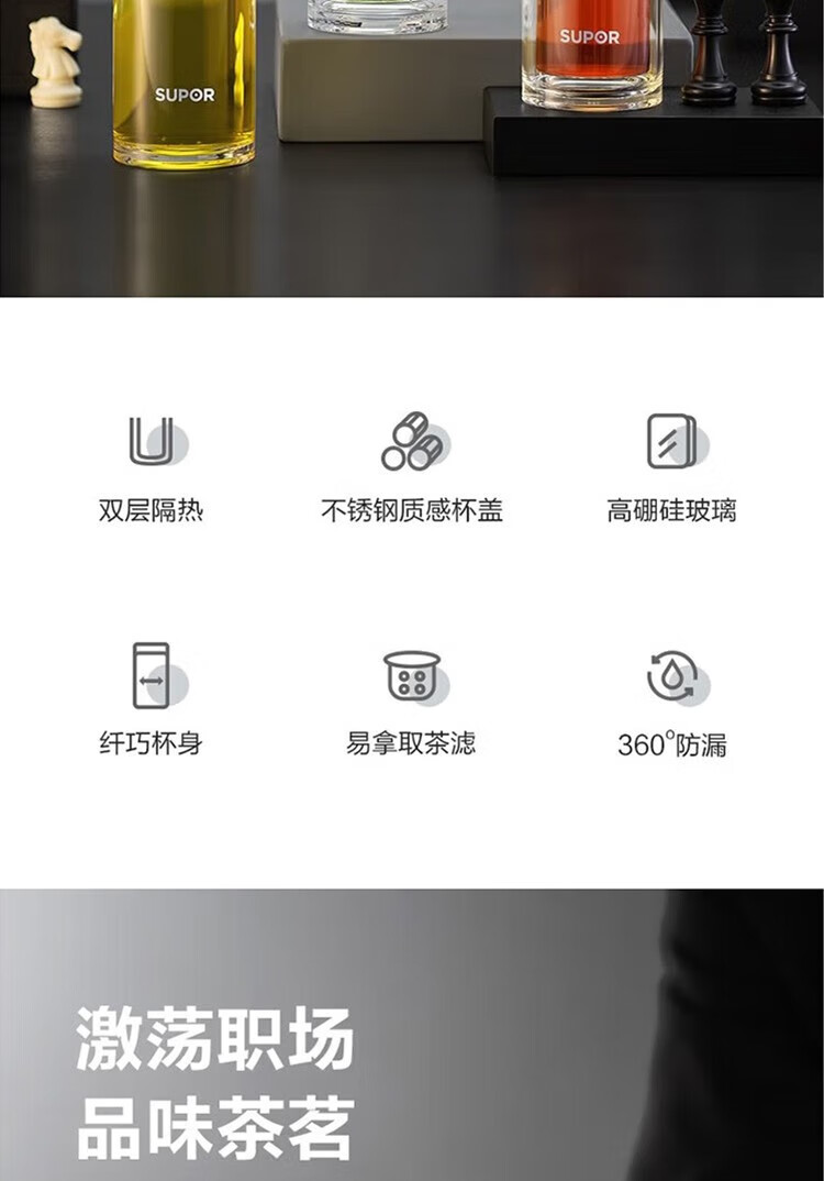 苏泊尔(SUPOR)330ml玻璃杯双层耐高温防烫车载水杯KC33GU10(单位:个) 乌木黑