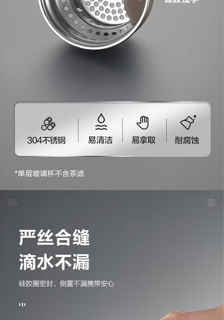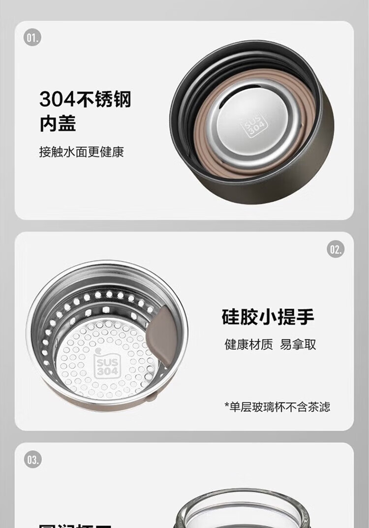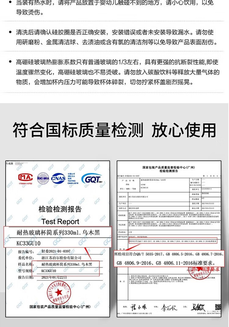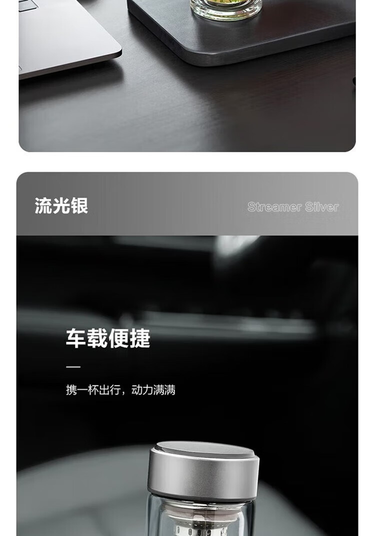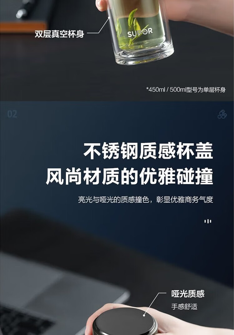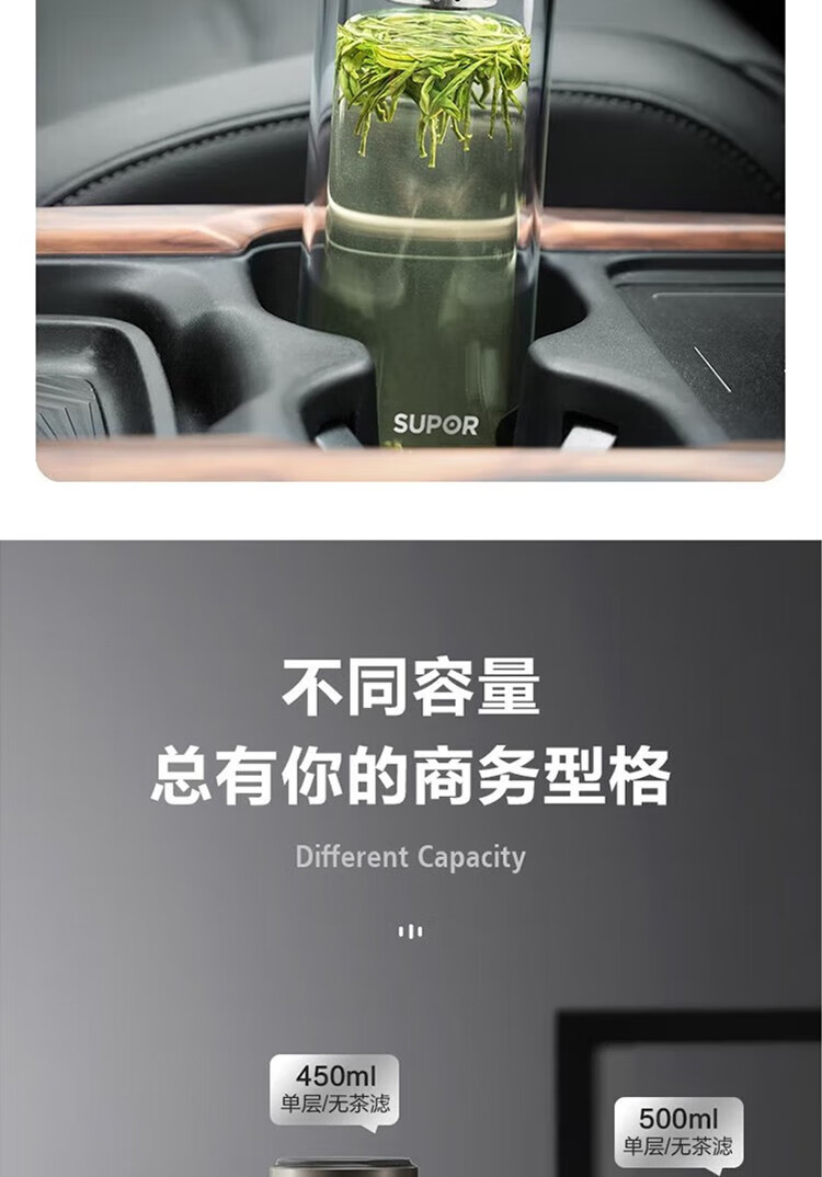 苏泊尔(SUPOR)330ml玻璃杯双层耐高温防烫车载水杯KC33GU10(单位:个) 乌木黑