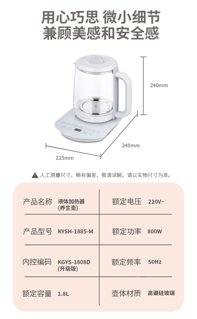 康佳(KONKA)家用恒温自动保温1.8L养生壶KYSH-1885-M(单位:台) 白色