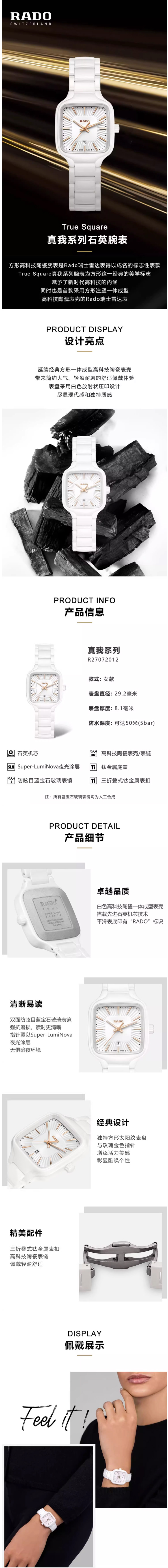雷达(RADO)真我系列石英女士手表 R27072012(单位1块) 白色