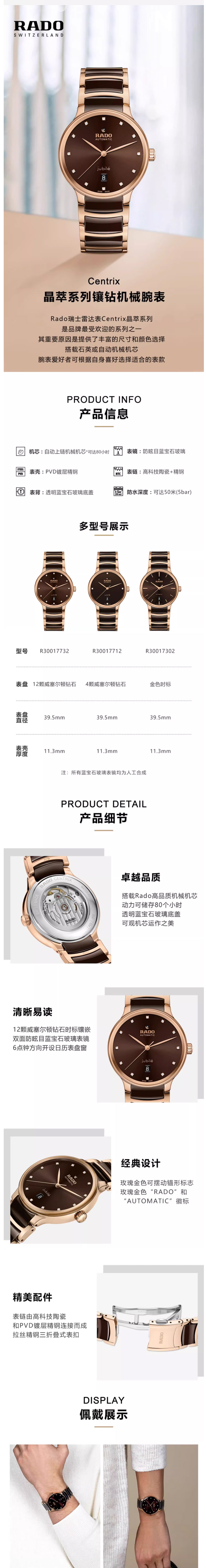 雷达(RADO) 晶萃系列陶瓷机械男士手表 R30017712(单位1块) 棕色