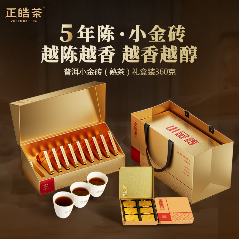 正皓茶 普洱茶小金砖熟茶超值礼盒装360g(单位:盒) 金色