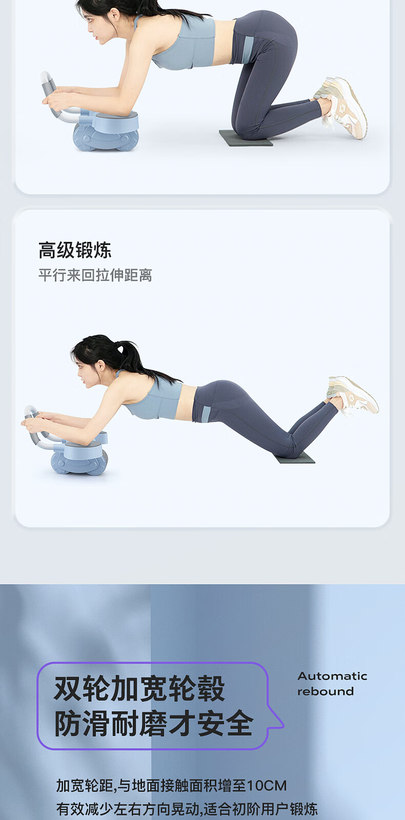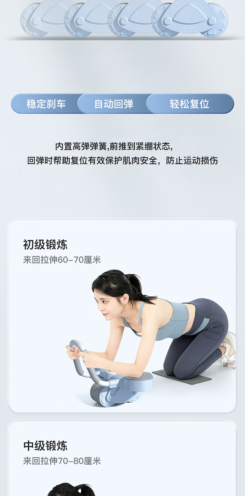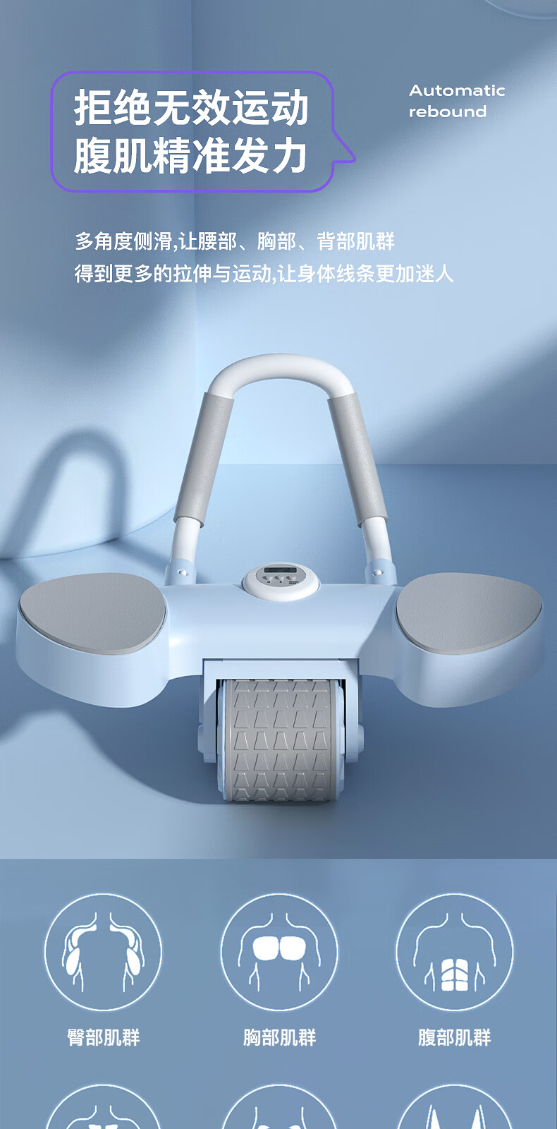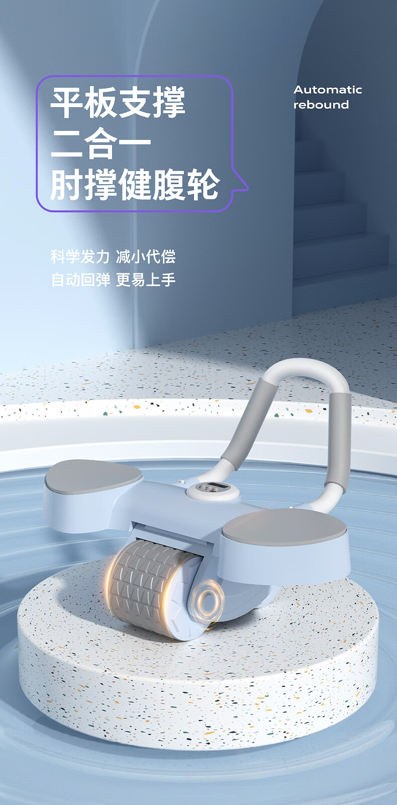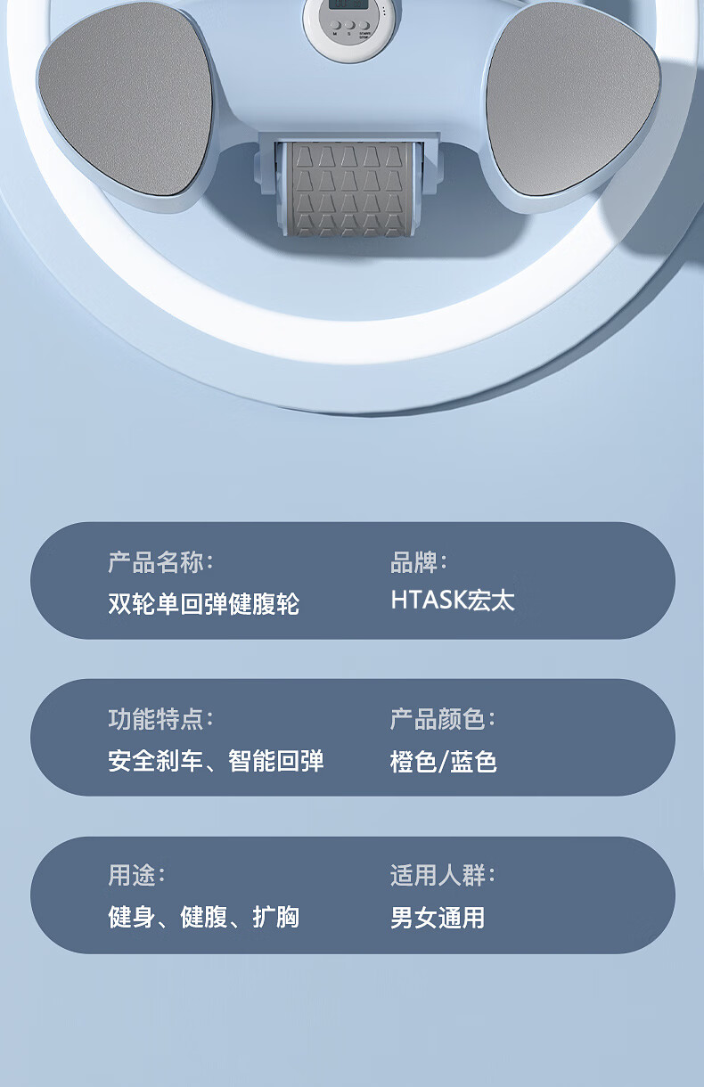 宏太(HongTai)健腹轮自动回弹练腹肌收腹神器滚轮男女家用肘撑健身器材1件 平板撑健腹轮-蓝色