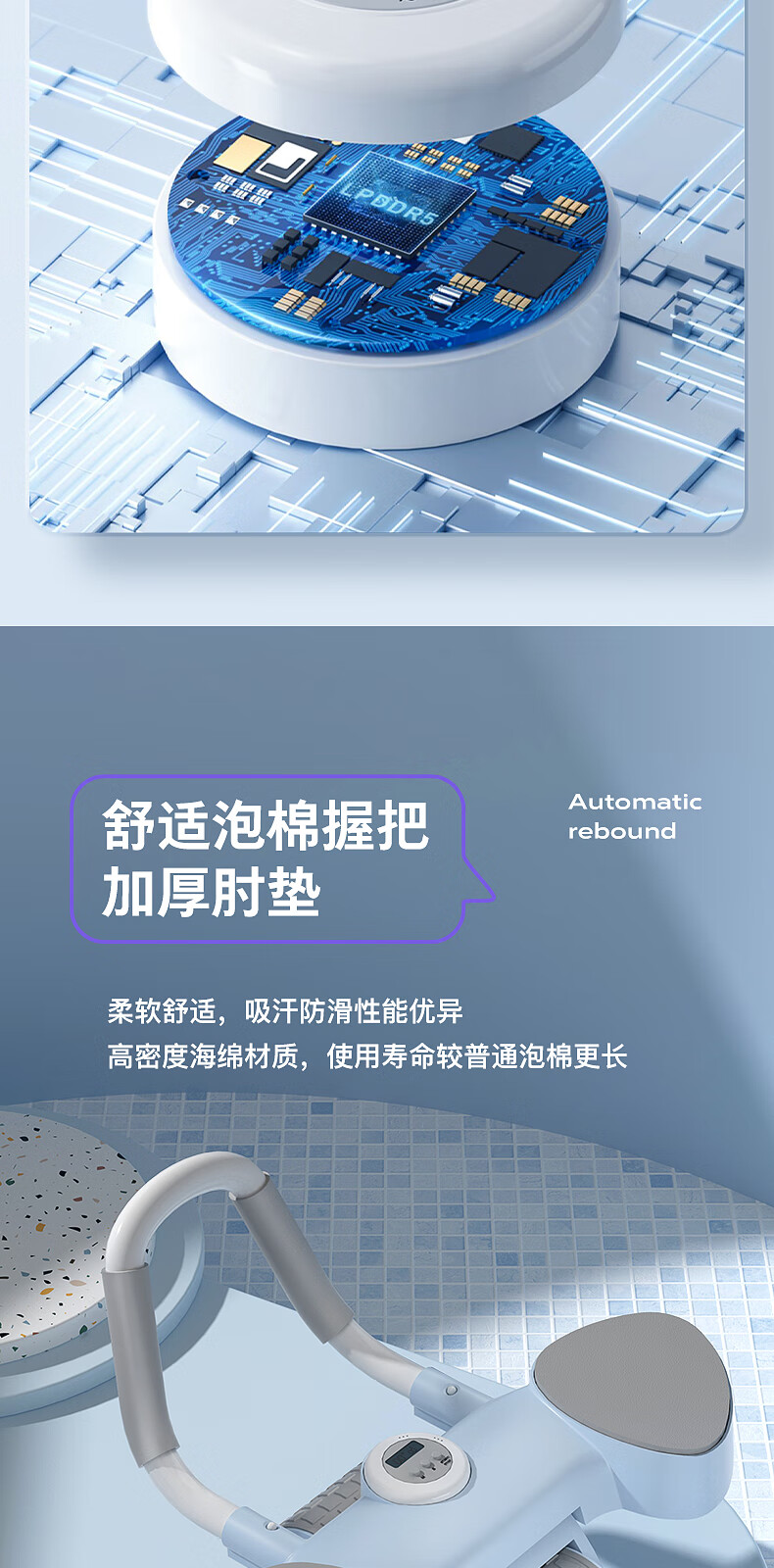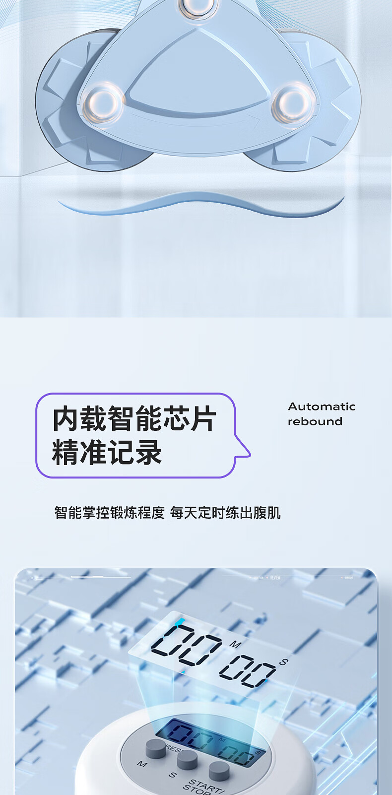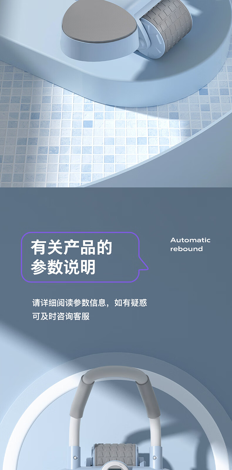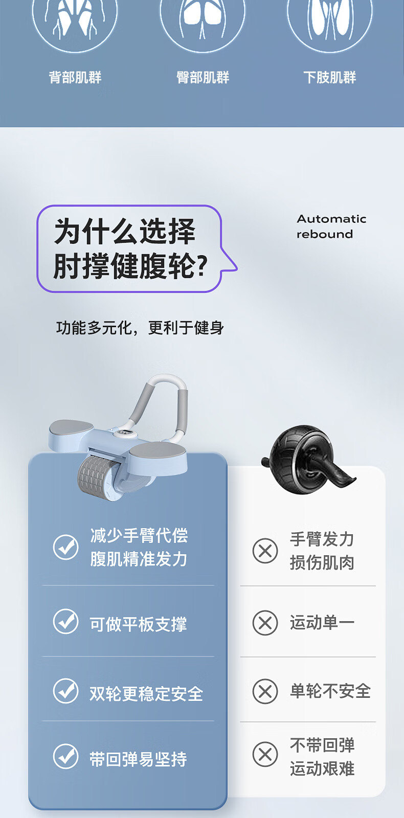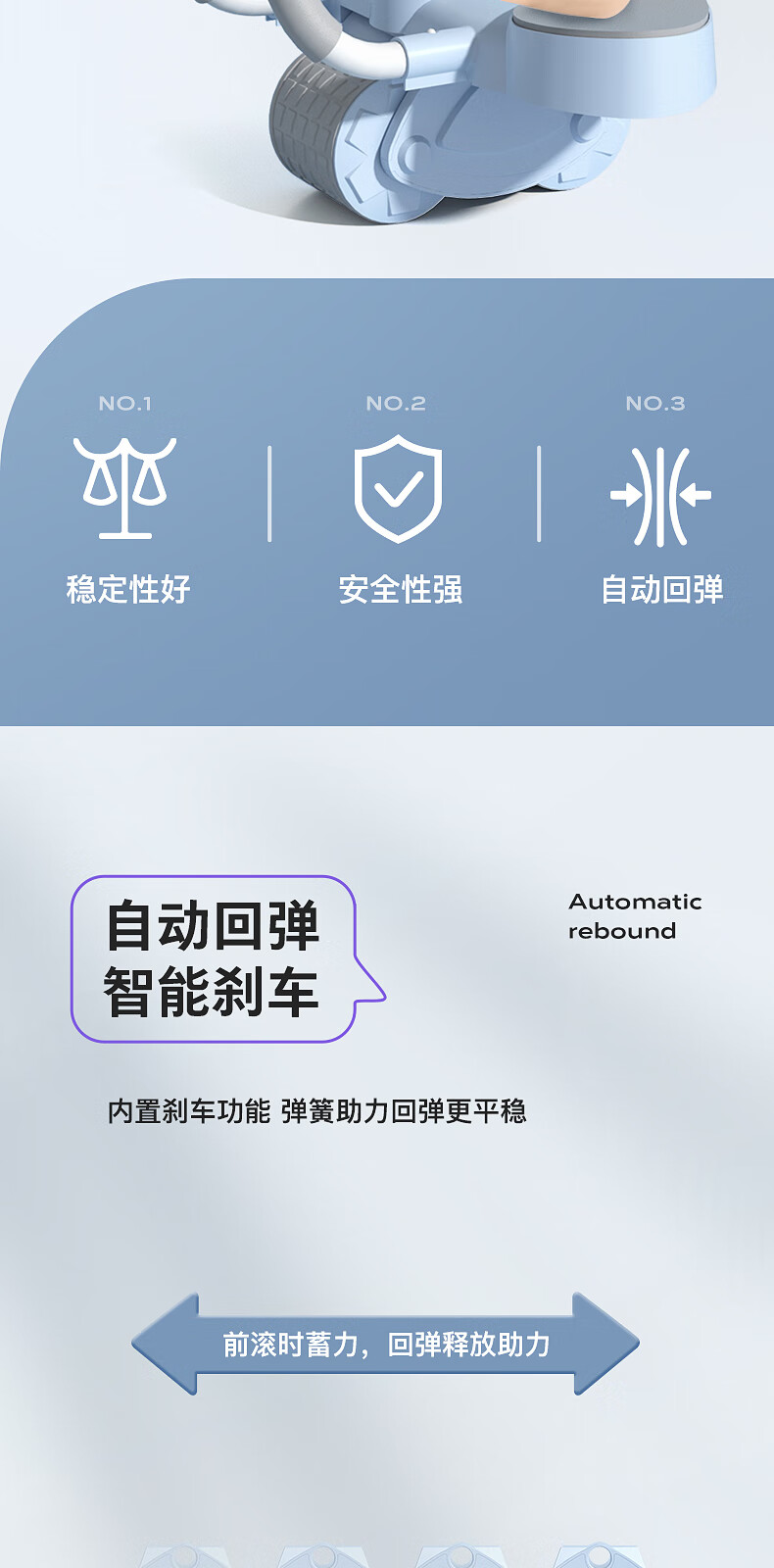 宏太(HongTai)健腹轮自动回弹练腹肌收腹神器滚轮男女家用肘撑健身器材1件 平板撑健腹轮-蓝色