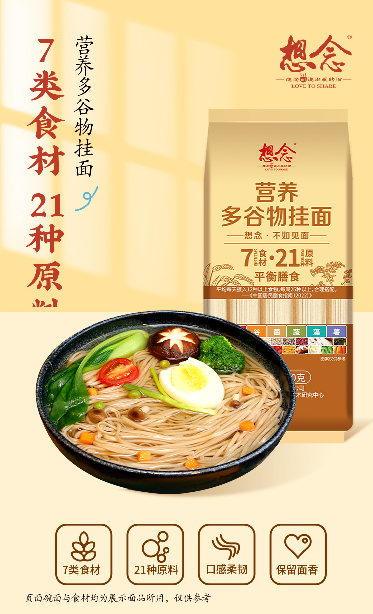 想念 杂粮面500g*4包(红豆薏米+荞麦+藜麦+营养多谷物面)(单位:袋) 象牙色