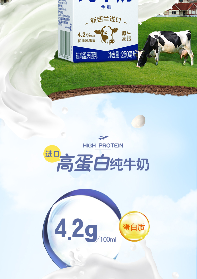 纽麦福 纯牛奶 250ml*24 4.2全脂高钙 蓝色(单位:箱)