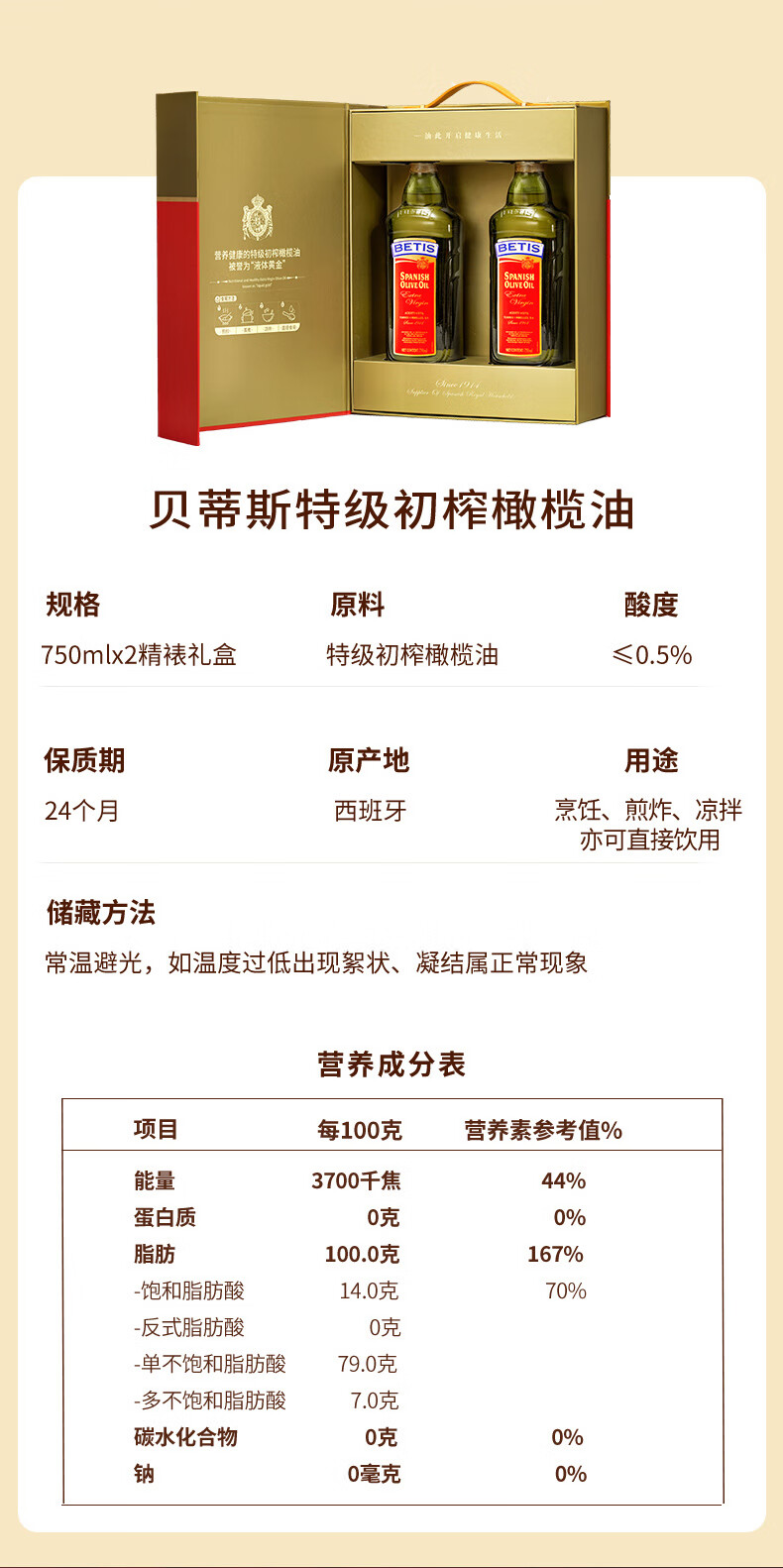 贝蒂斯 BDS-880120 750ml*2礼盒 特级初榨橄榄油 混色(单位:盒)