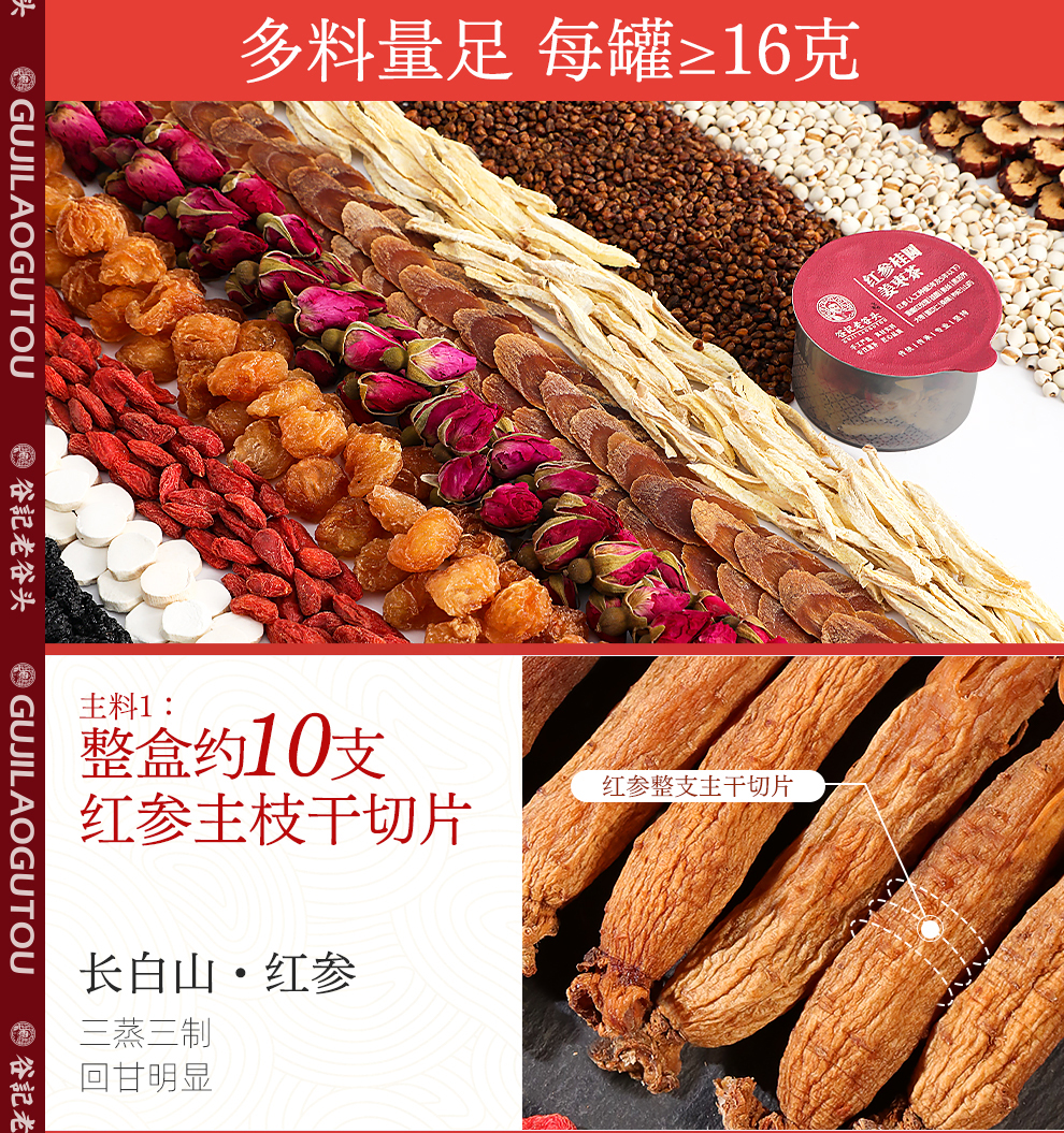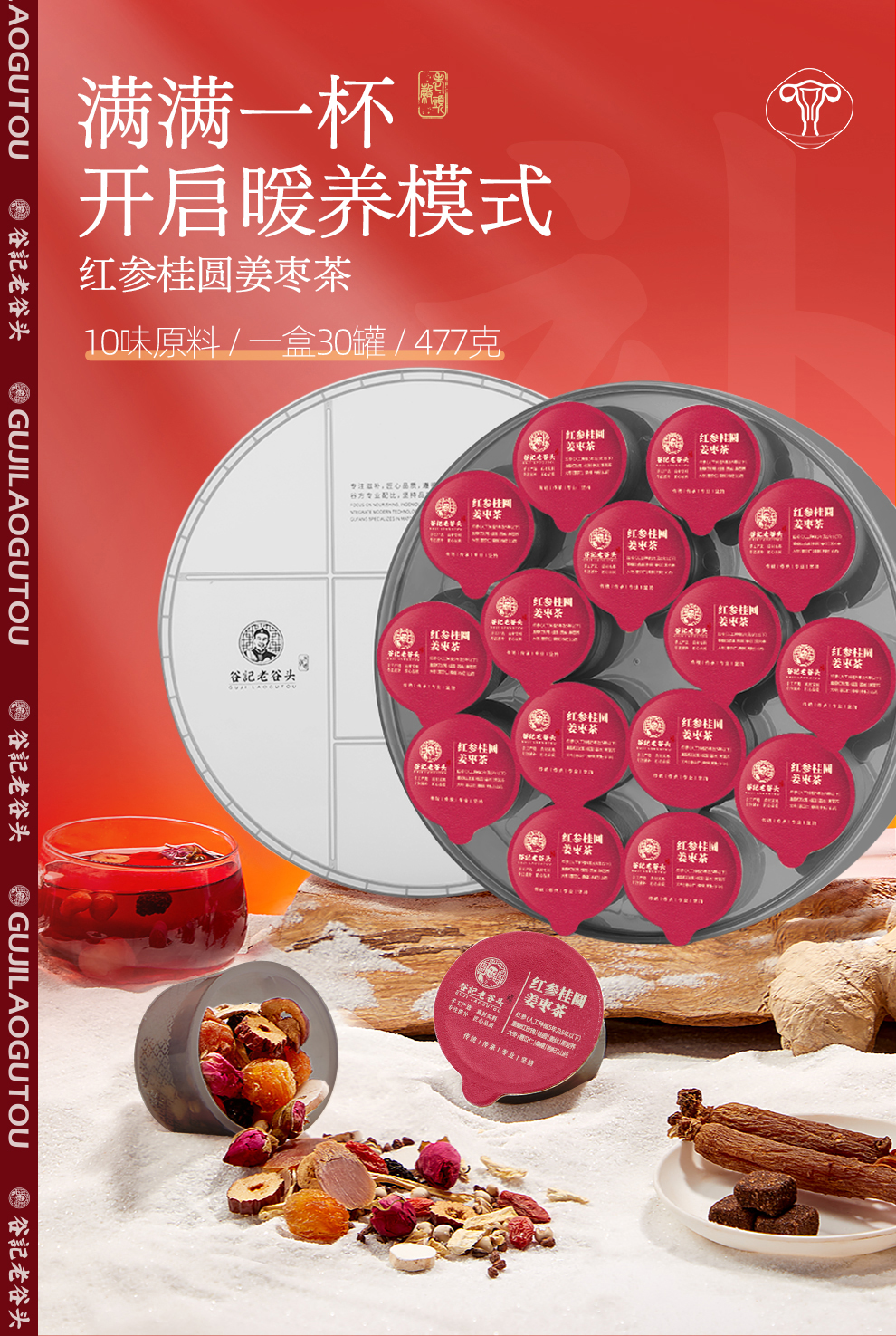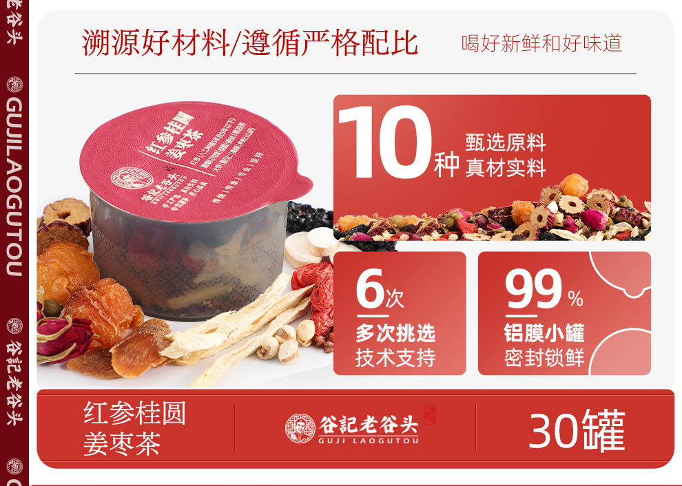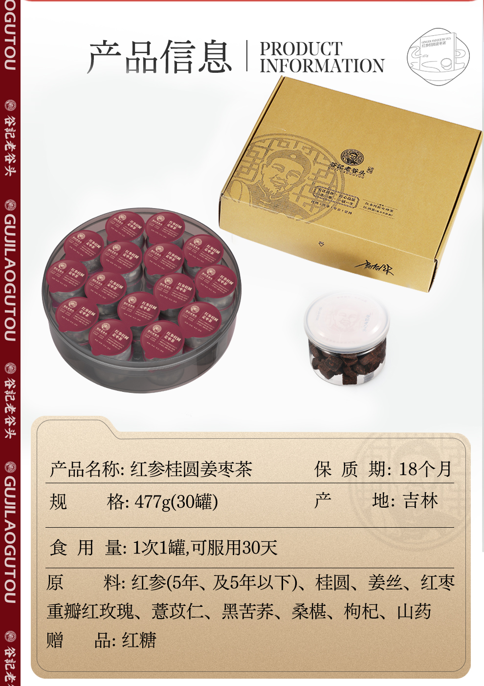 谷记老谷头 红参桂圆姜枣茶 477g 养生茶 红色(单位:盒)