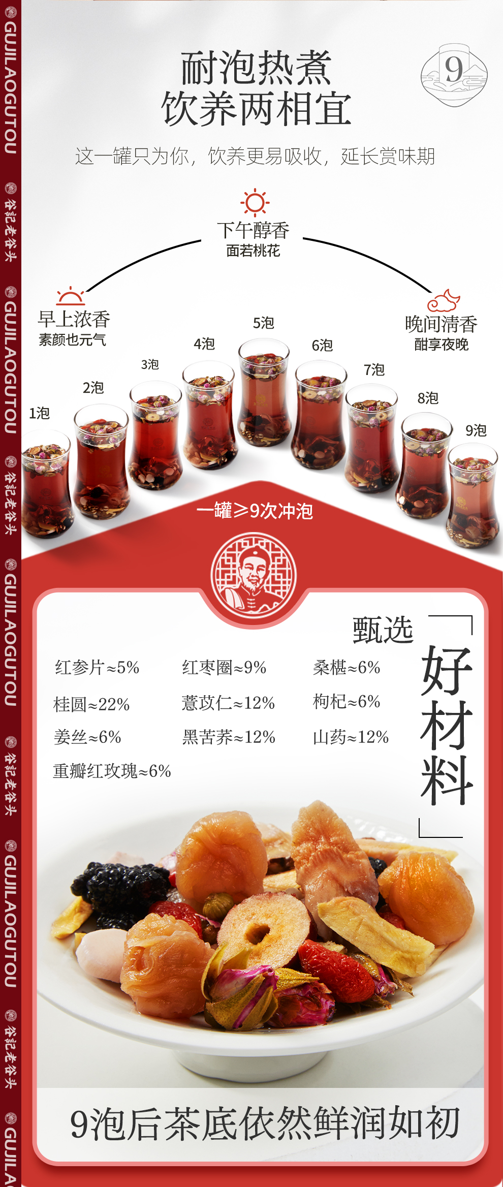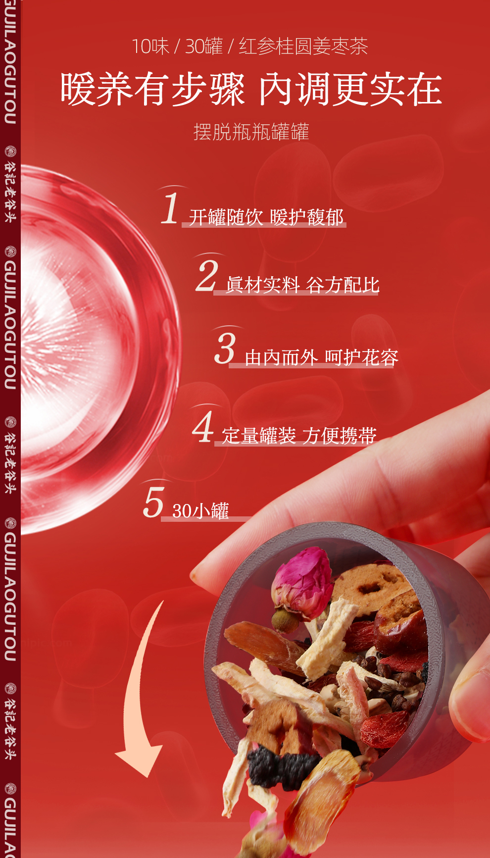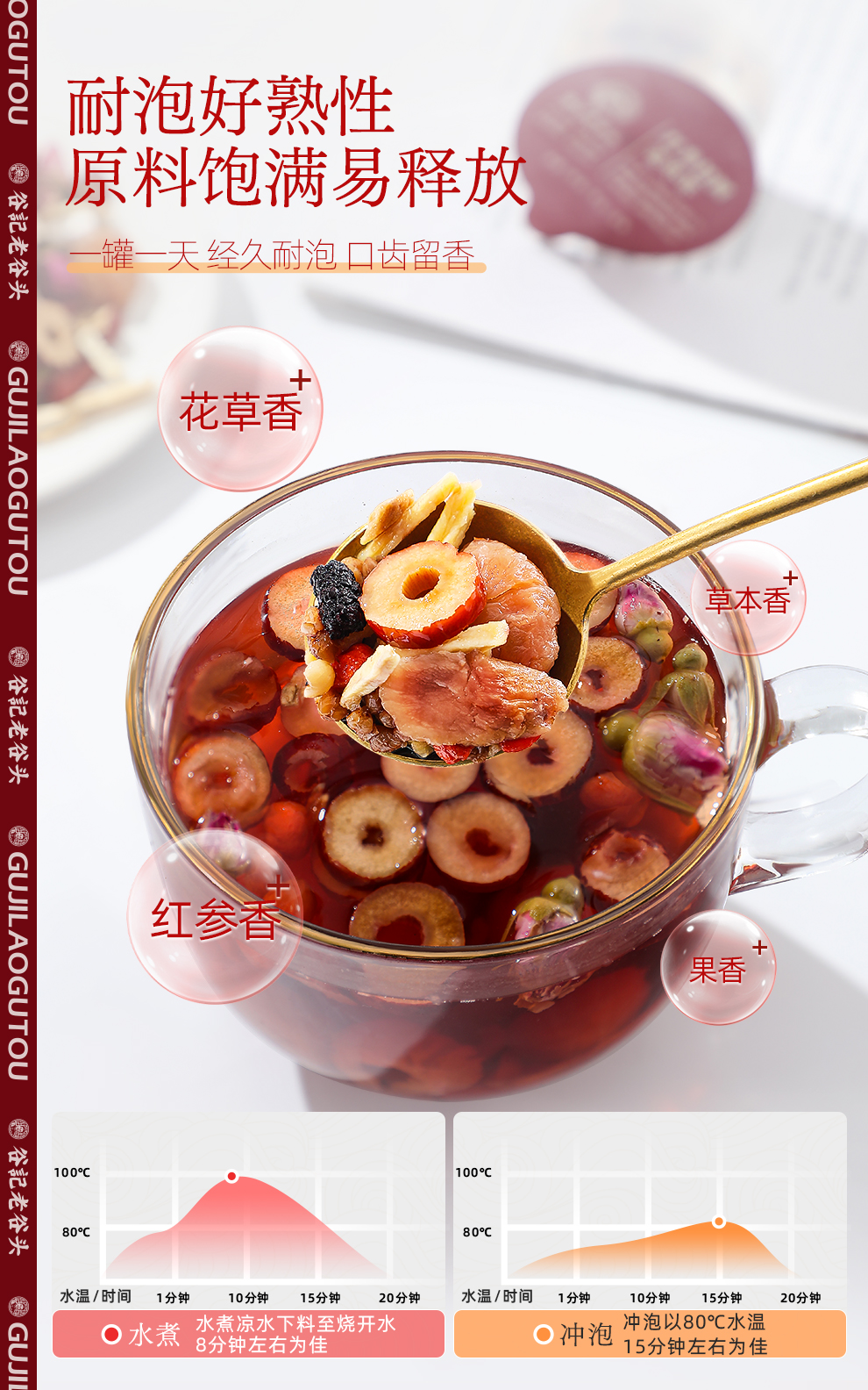 谷记老谷头 红参桂圆姜枣茶 477g 养生茶 红色(单位:盒)
