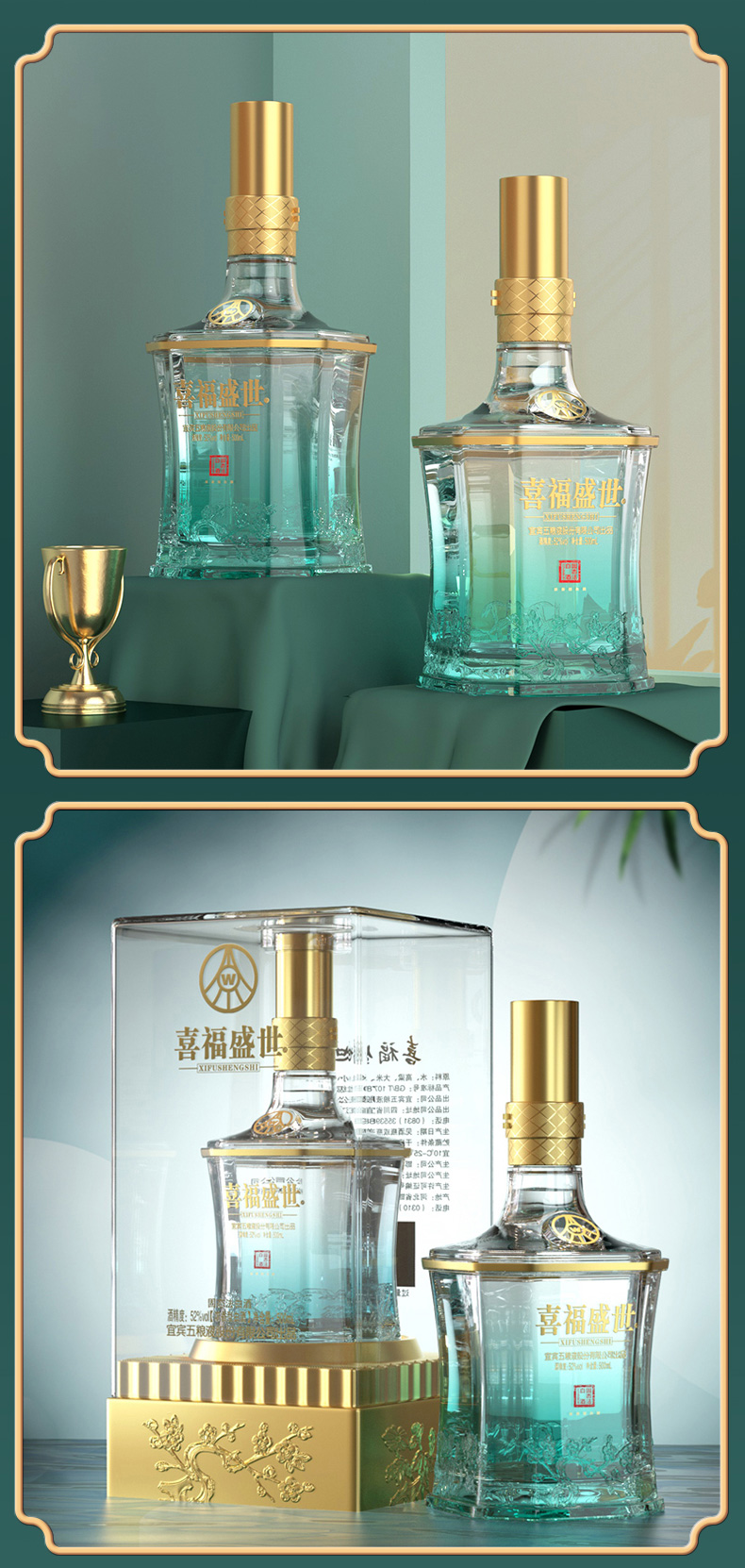 五粮液 股份出品 喜福盛世祥和52度浓香型 白酒 500ml*1瓶 宝石蓝(单位:瓶)