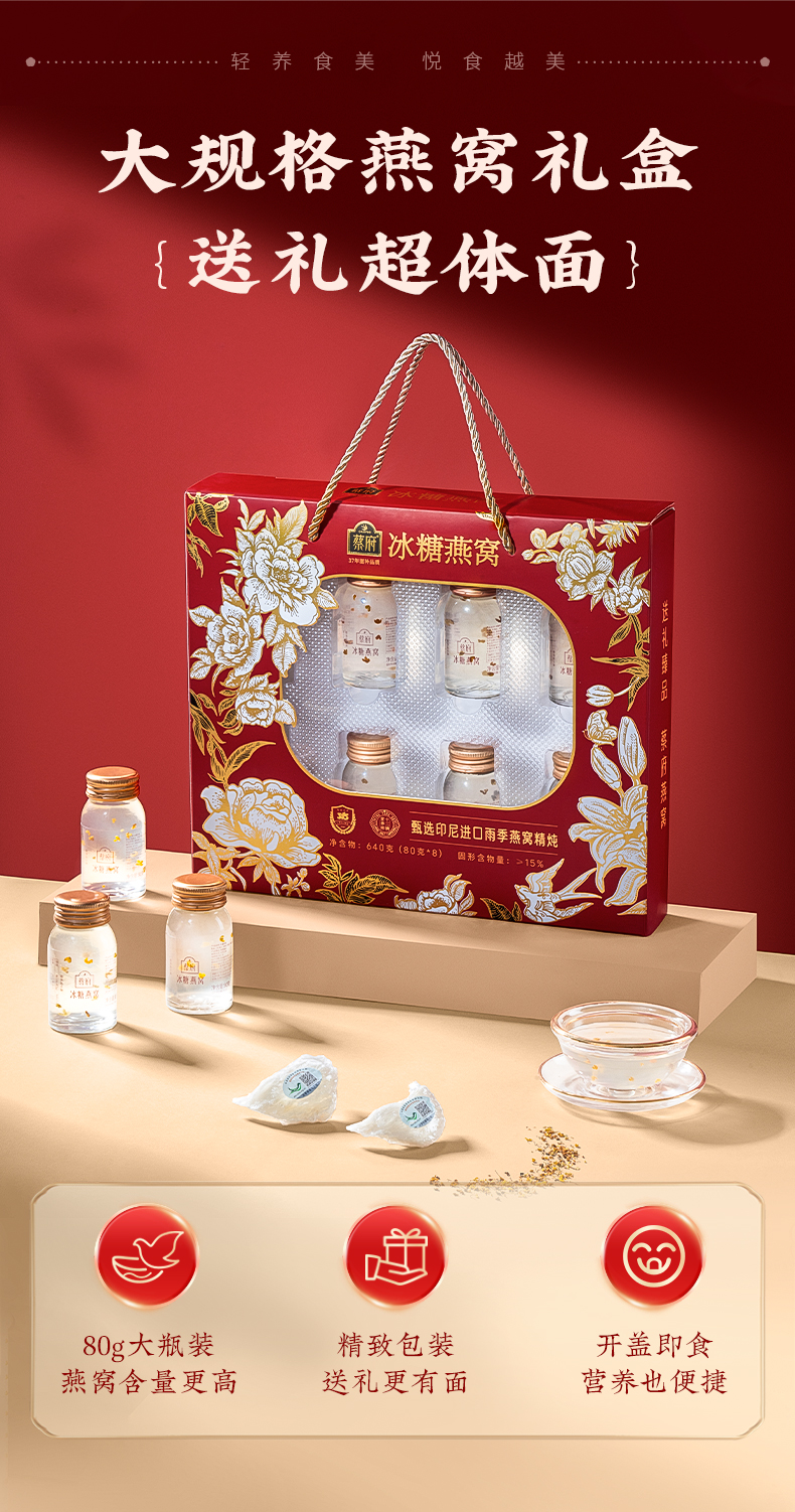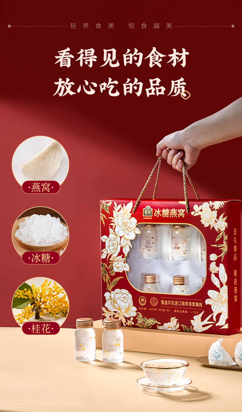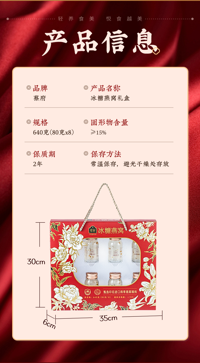 蔡府(CHAIFOO) 冰糖燕窝礼盒 640g(80g*8碗) 即食燕窝滋补养生 红色(单位:盒)