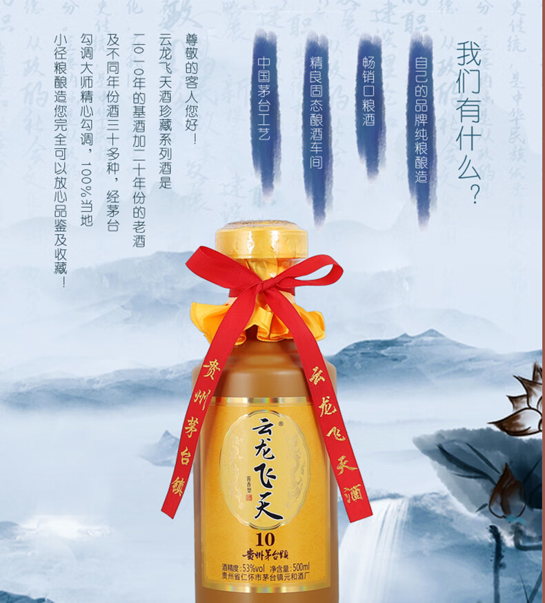云龙飞天 53%vol 500mL 云龙飞天窖藏10白酒 黄色(单位:瓶)