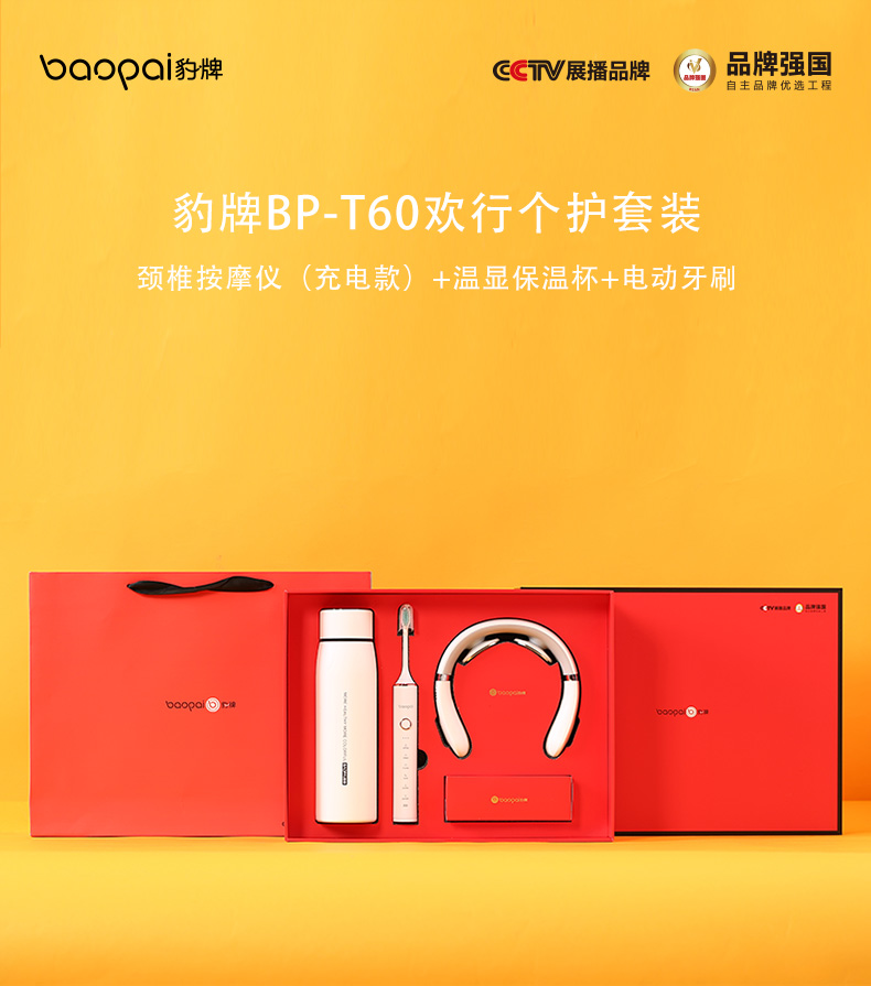 豹牌(BAOPAI) BP-T60 (颈椎按摩仪+电动牙刷+温显保温杯) 欢行个护套装 白色(单位:套)