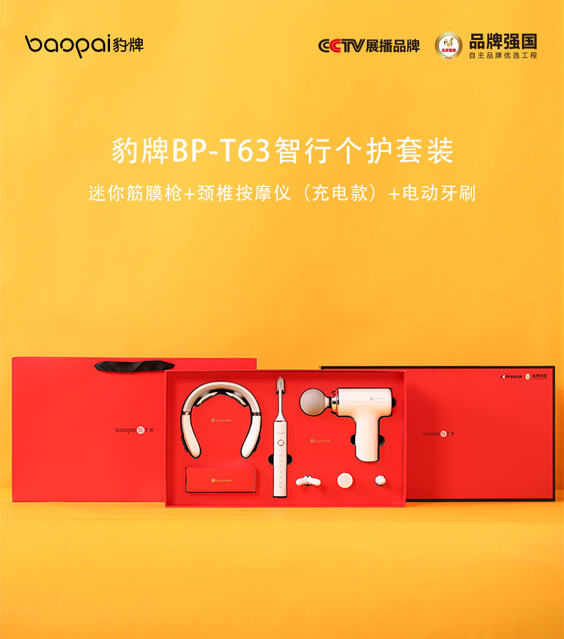 豹牌(BAOPAI) BP-T63 (颈椎按摩仪+迷你筋膜枪+电动牙刷) 智行个护套装 白色(单位:套)
