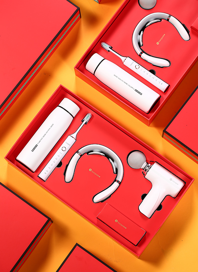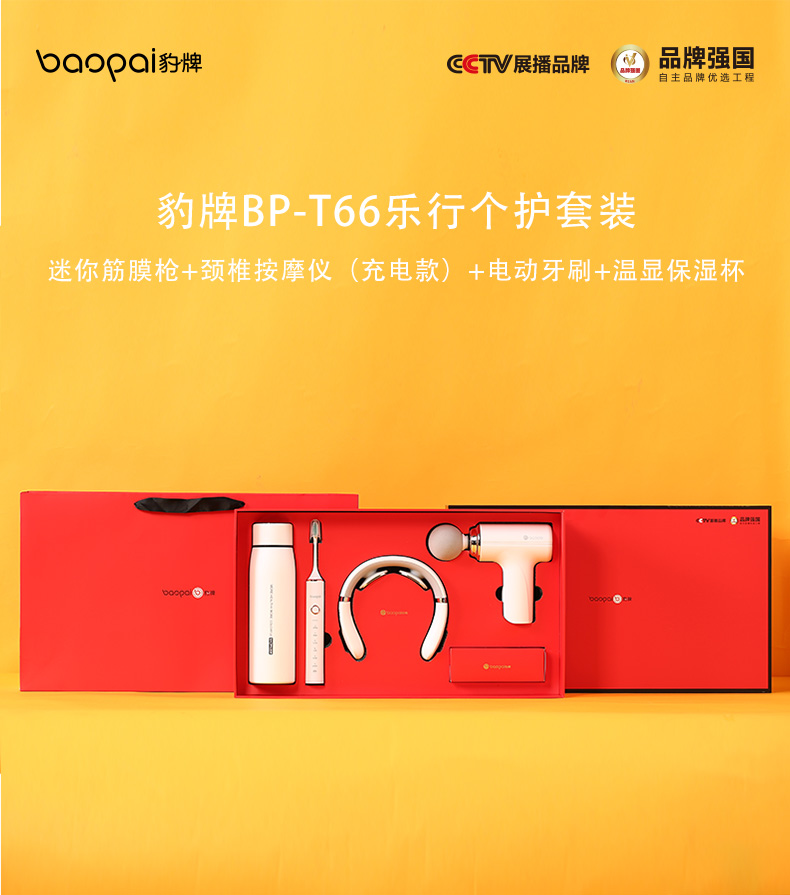 豹牌(BAOPAI) BP-T66 颈椎按摩仪+电动牙刷+迷你筋膜枪+温显保温杯 乐行个护套装 白色(单位:套)