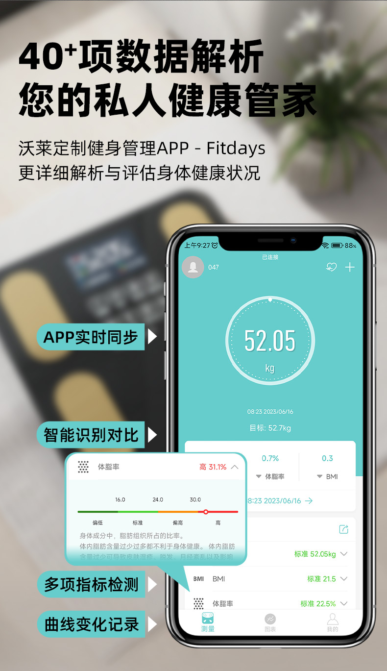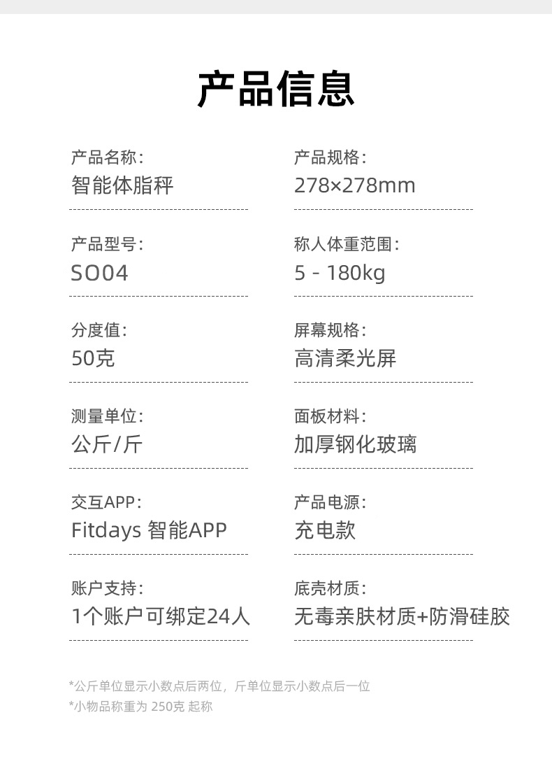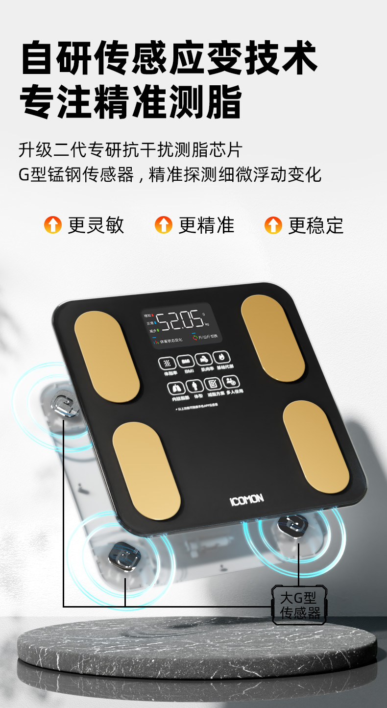 沃莱(ICOMON) SO04 278*278mm 智能体脂秤 黑色(单位:台)