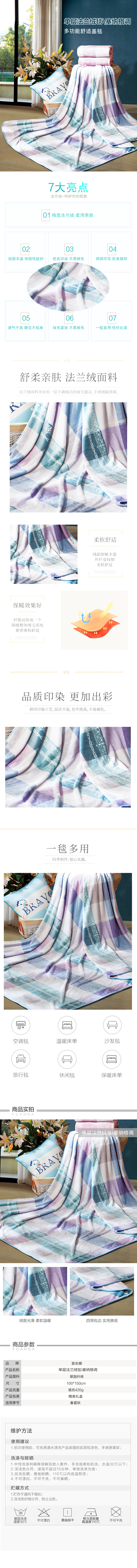 富安娜 塞纳格调 100*150cm 单层法兰绒毯 混色(单位:床)