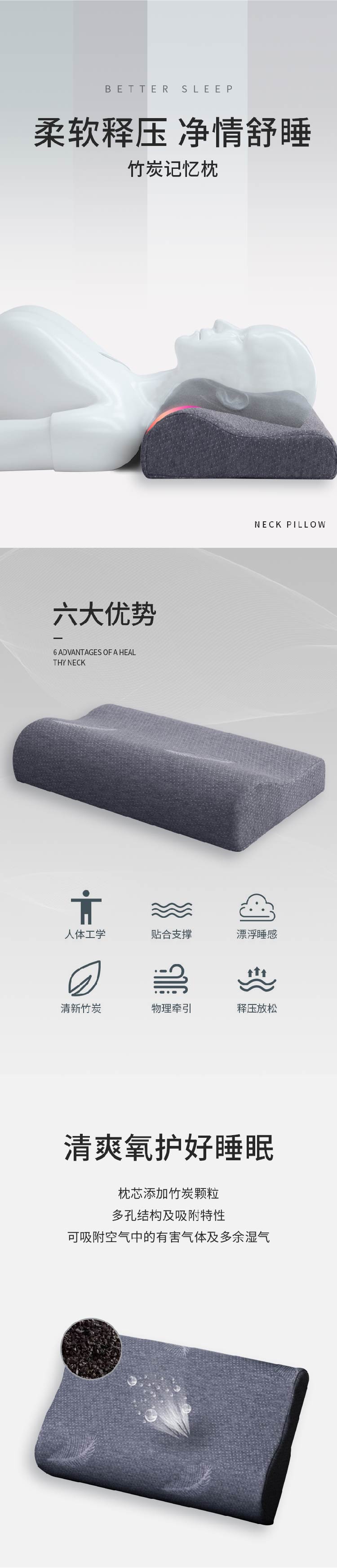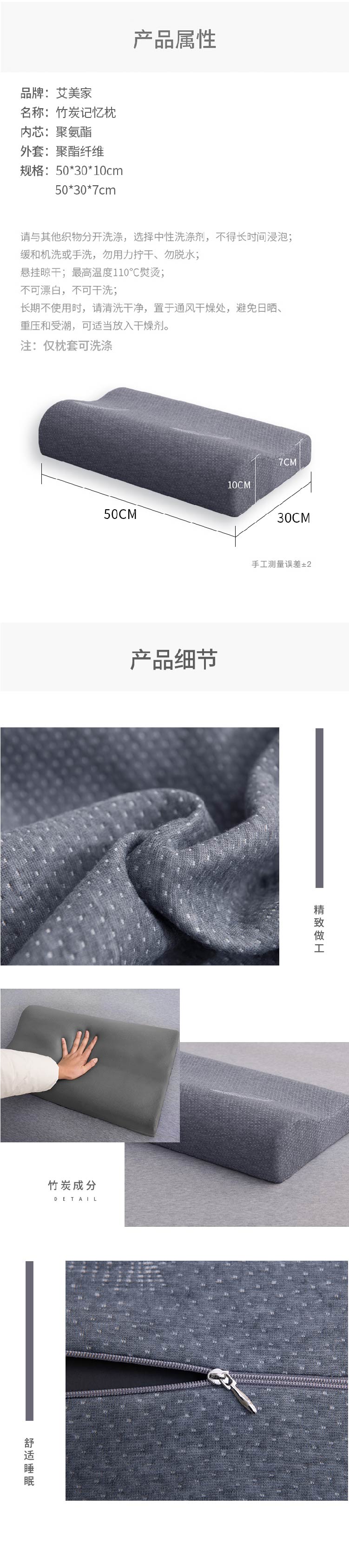 艾美家 单人枕 50*30cm 七星奢享竹炭枕 灰色(单位:个)