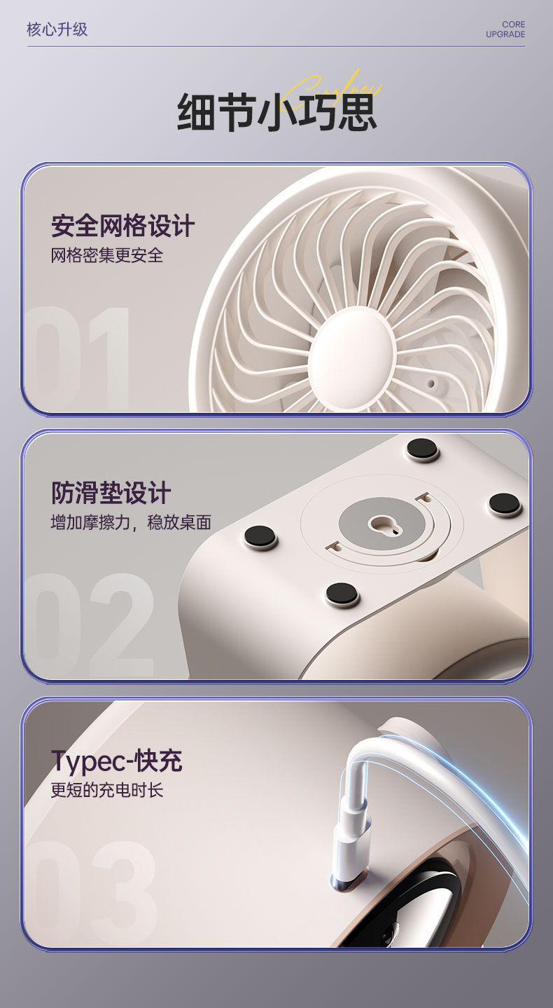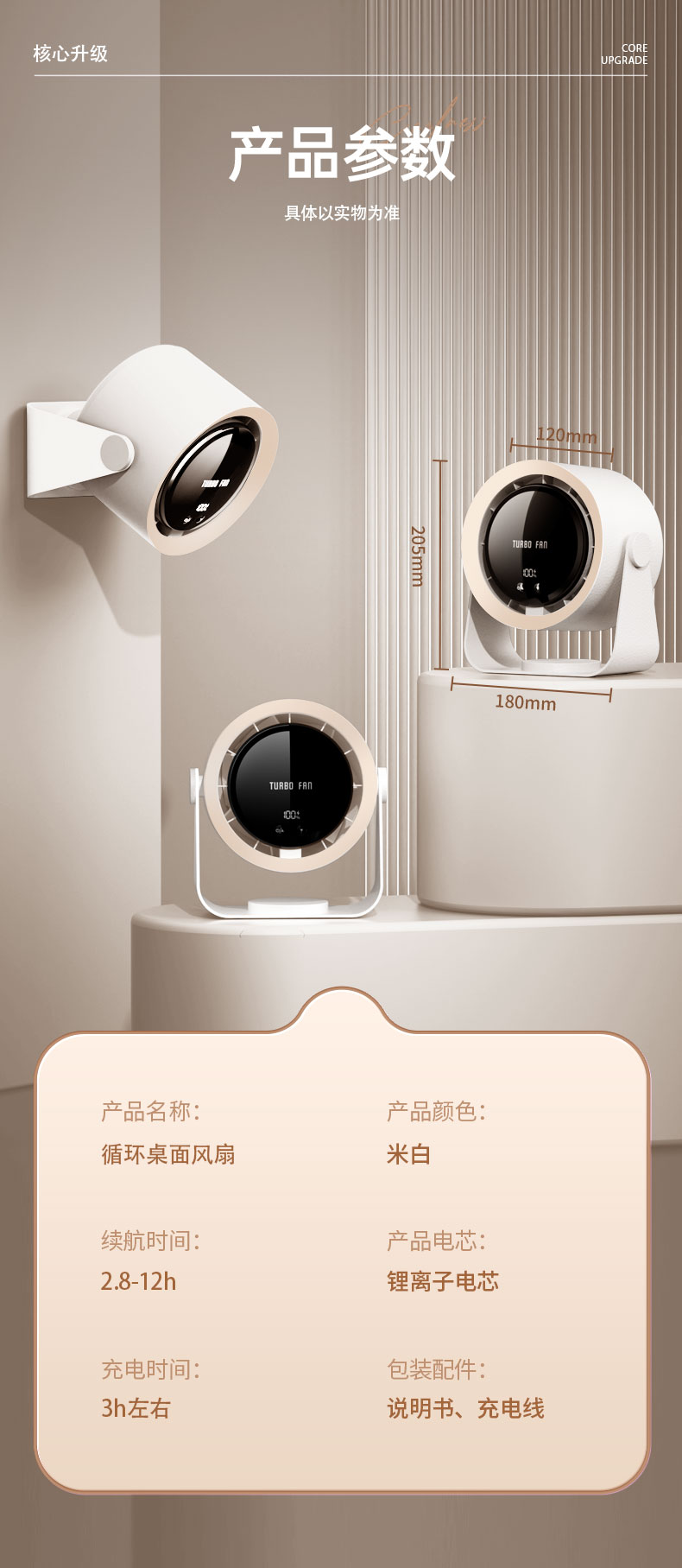 艾青春(AIYOUTH) N33 4000mAh 无极调速桌面循环风扇 米白色(单位:台)