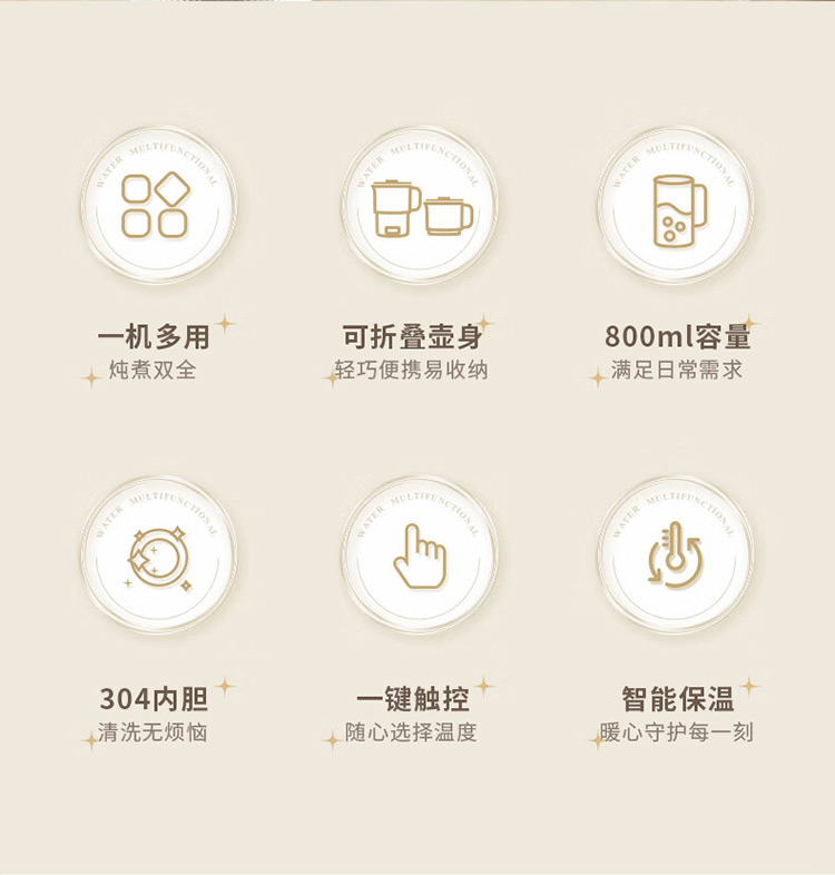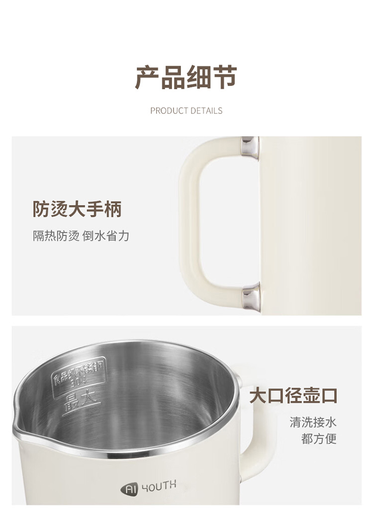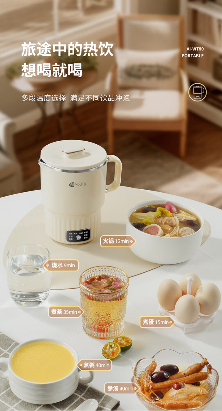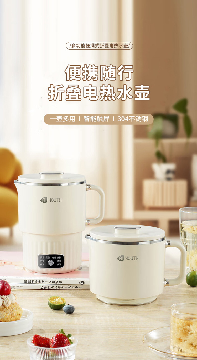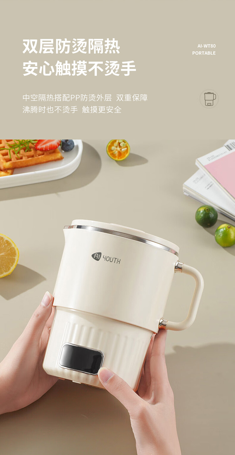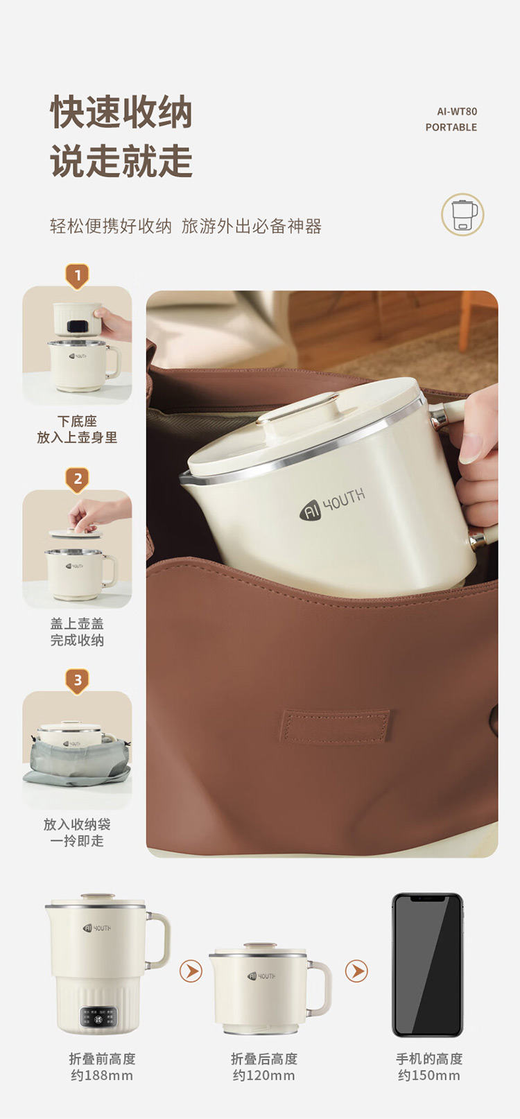艾青春(AIYOUTH) AI-WT80 0.8L 多功能折叠烧水壶 米白色(单位:台)
