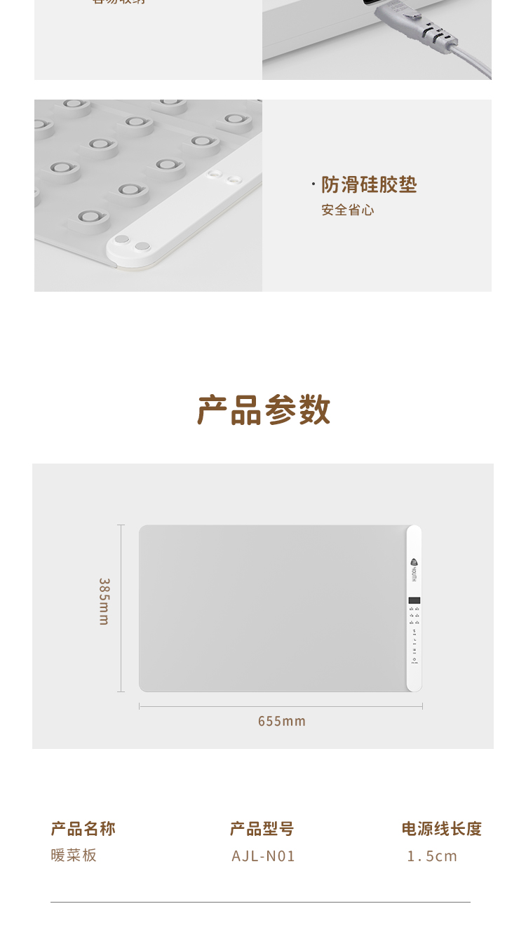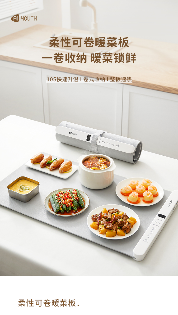 艾青春(AIYOUTH) AJL-N01 655MM*385MM 多档调节硅胶暖菜板 浅灰色(单位:台)