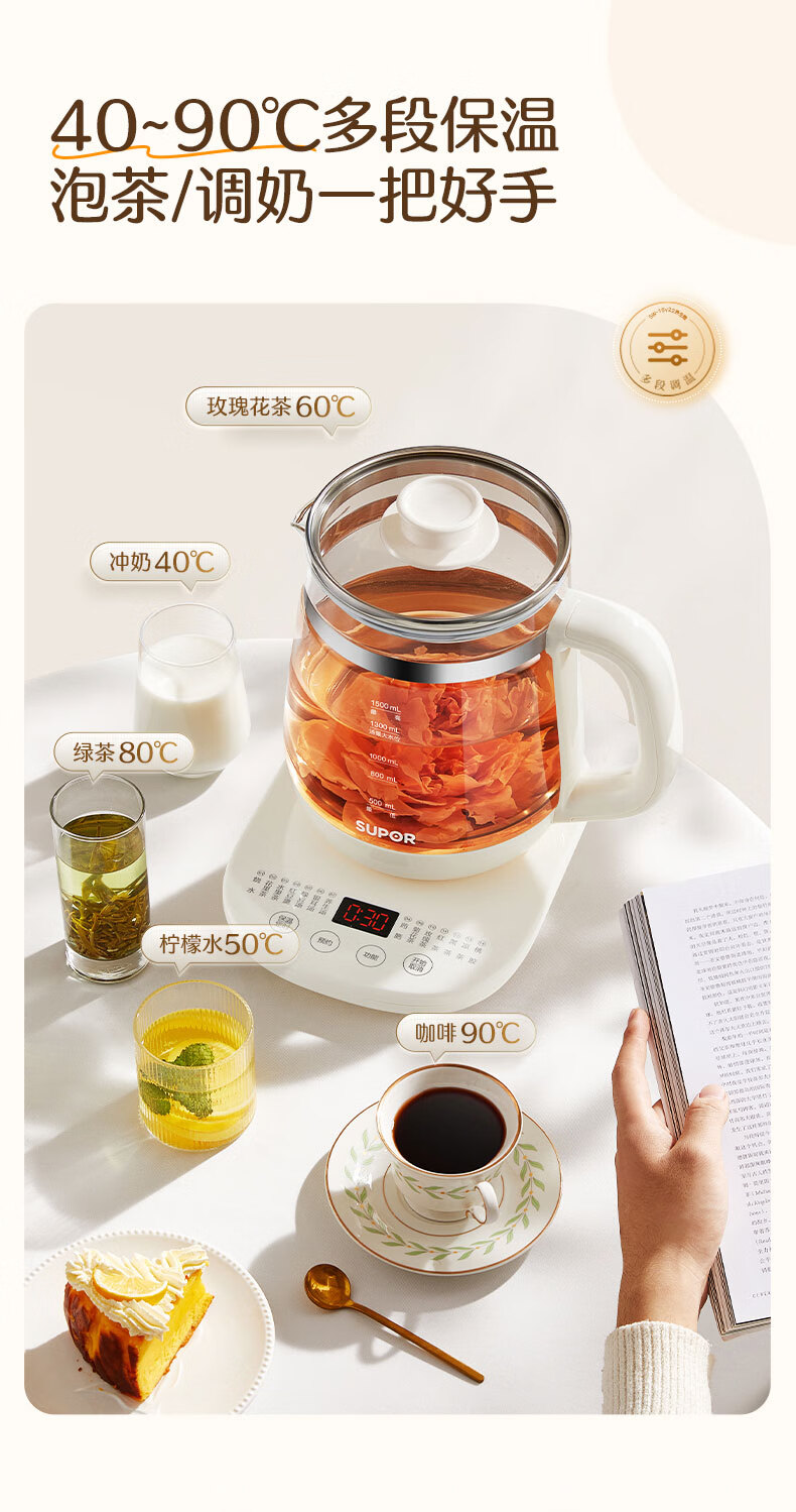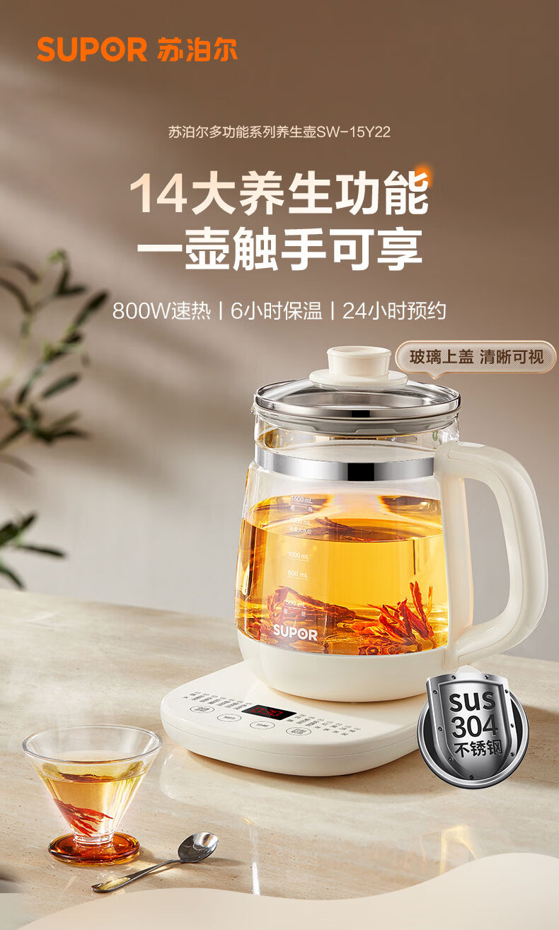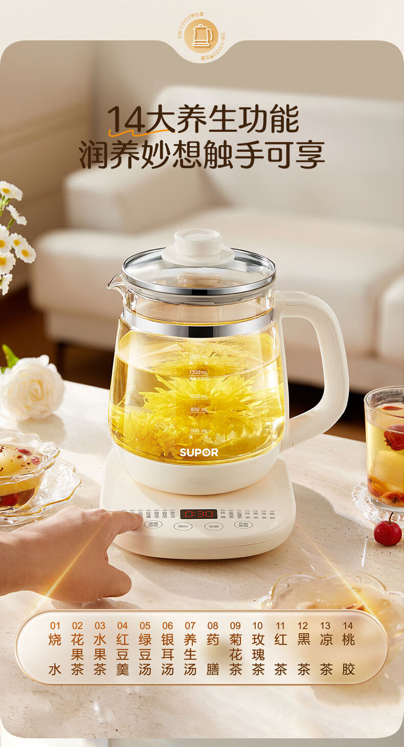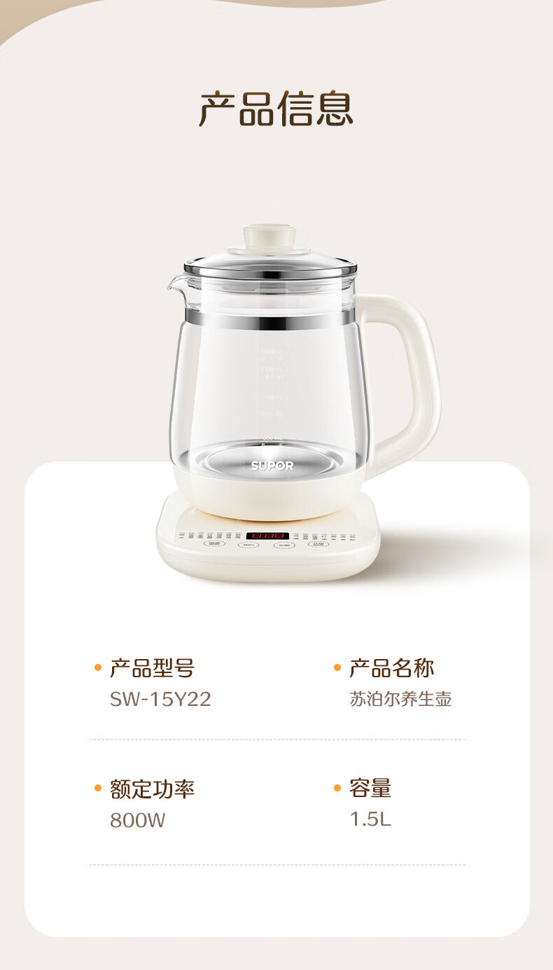 苏泊尔(SUPOR) SW-15Y22 1.5L 养生壶 白色(单位:台)