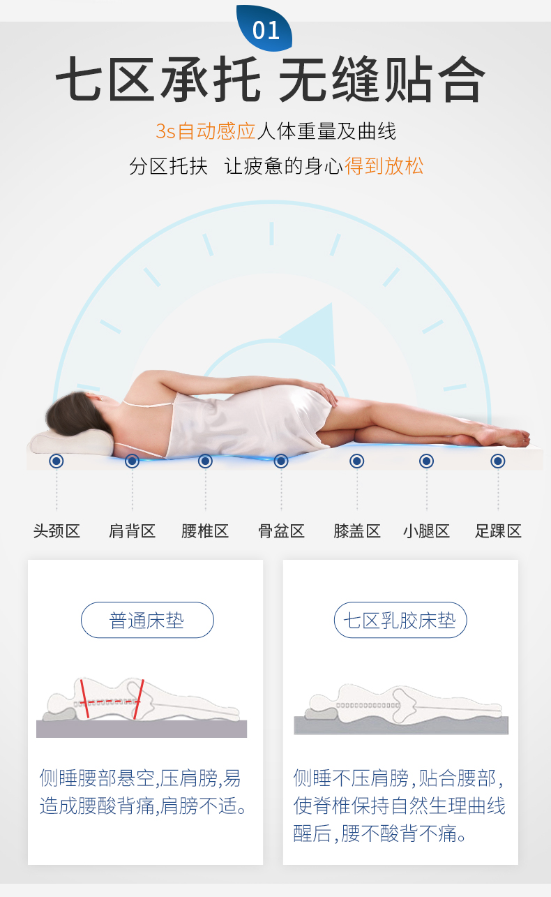 诺伊曼noyoke乳胶按摩床垫(升级版)白色180*200*5cm SD6089 单位:床 本白色