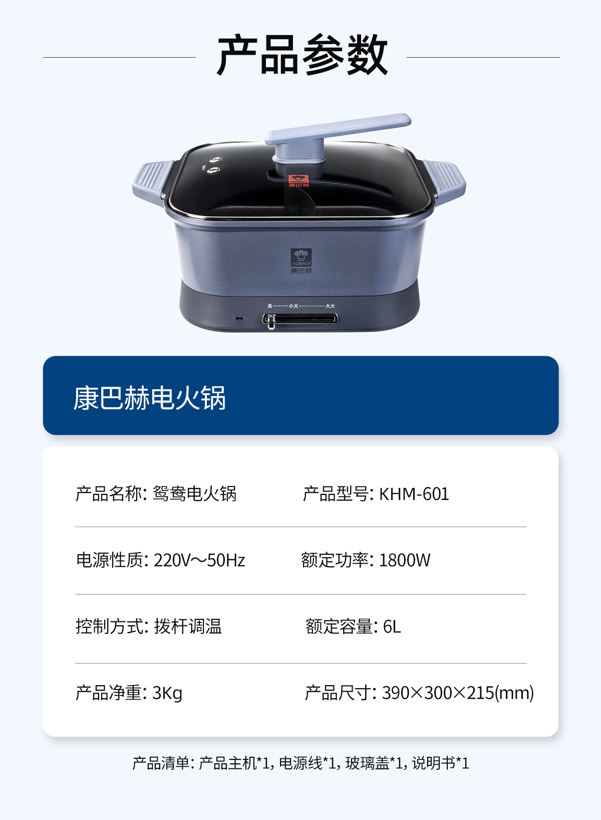 康巴赫 KHM-601 6L 百味电火锅 蓝色(单位:台)