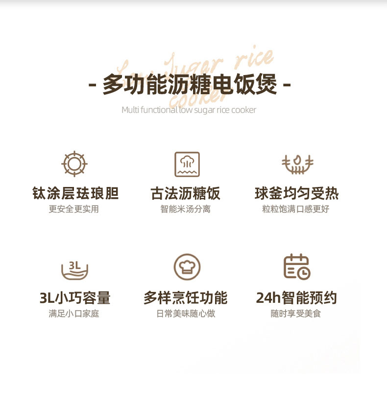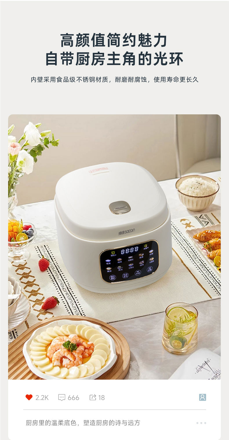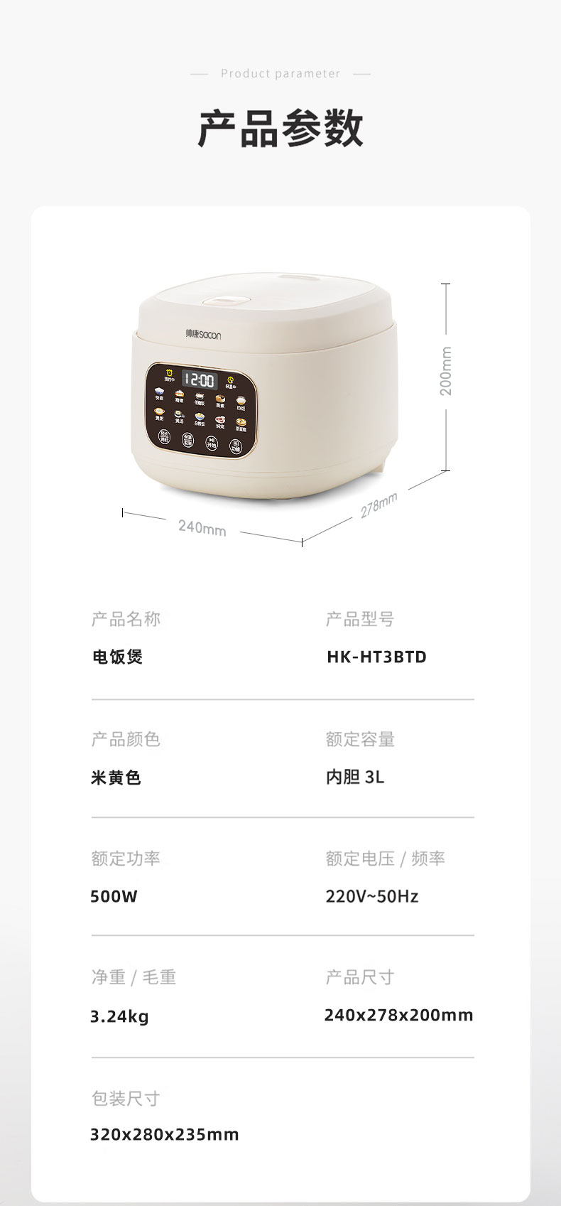 帅康(Sacon) HK-HT3BTD 3L 低糖电饭煲 米黄色(单位:台)