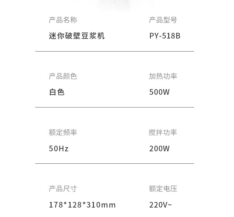 卡屋(kawu) PY-518B 1L 迷你破壁机 白色(单位:台)