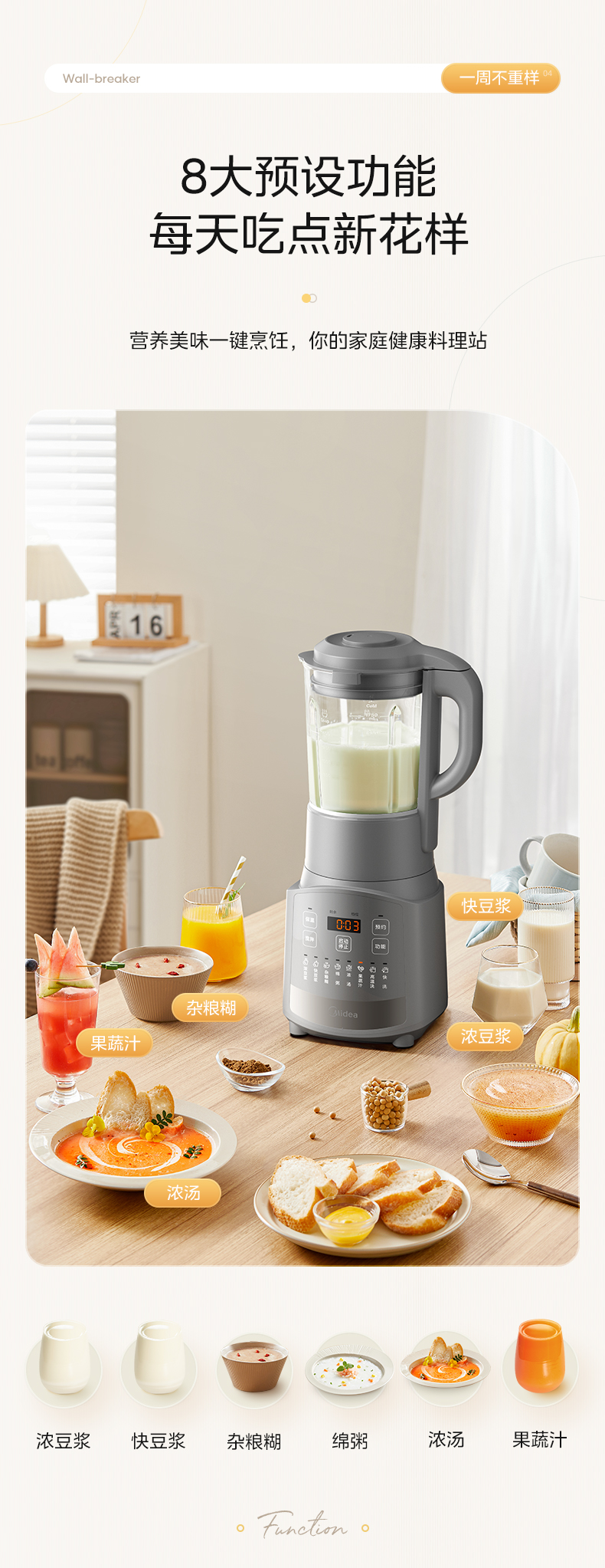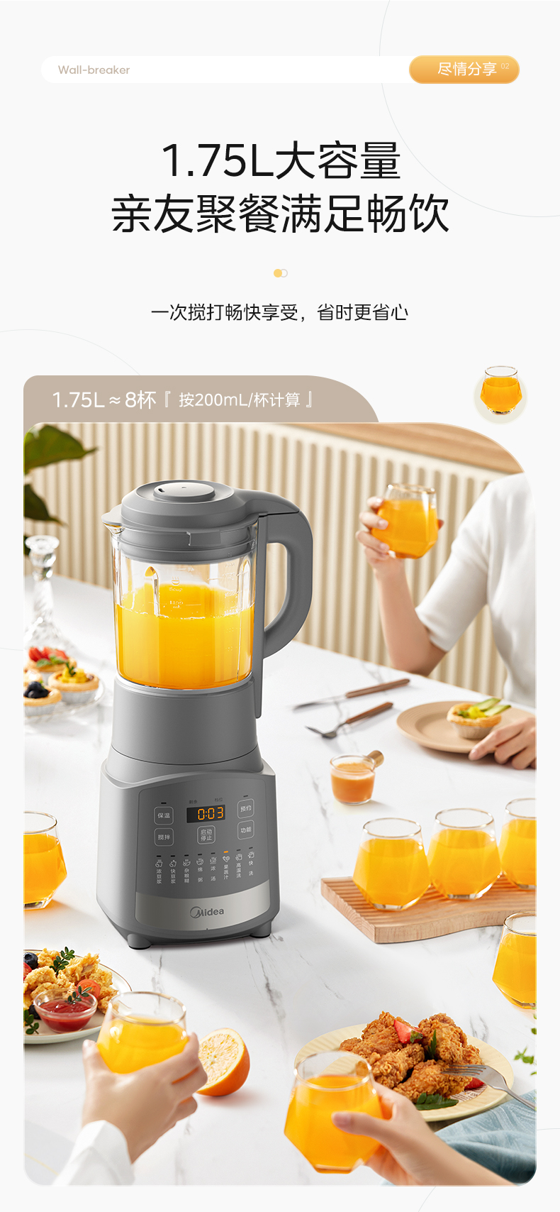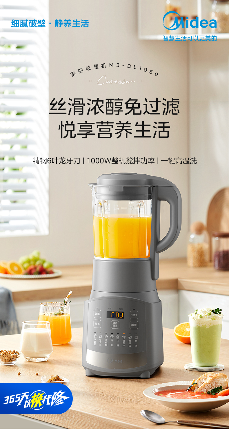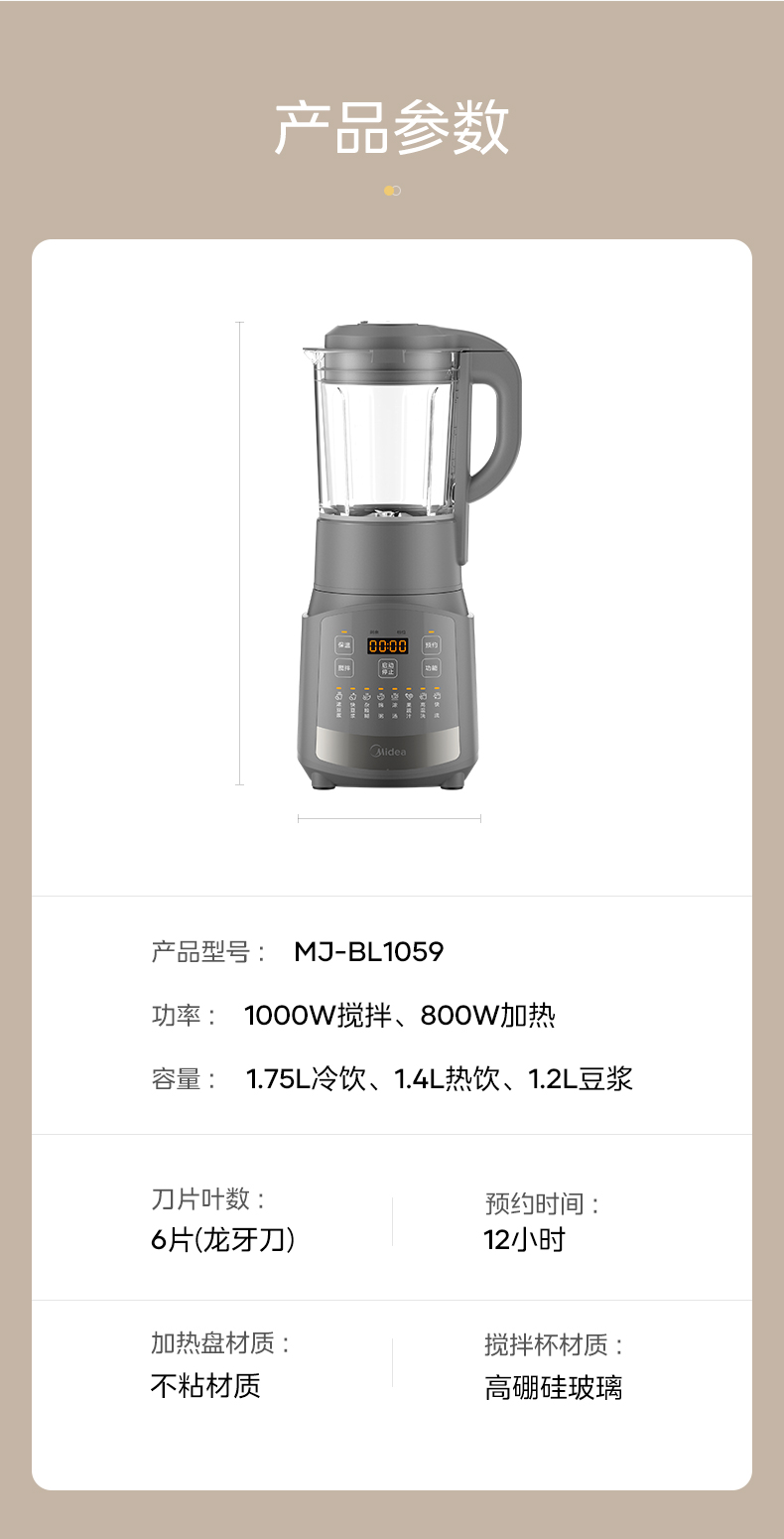 美的(Midea) BL1059 1.75L 豆浆机料理机破壁机 灰色(单位:台)