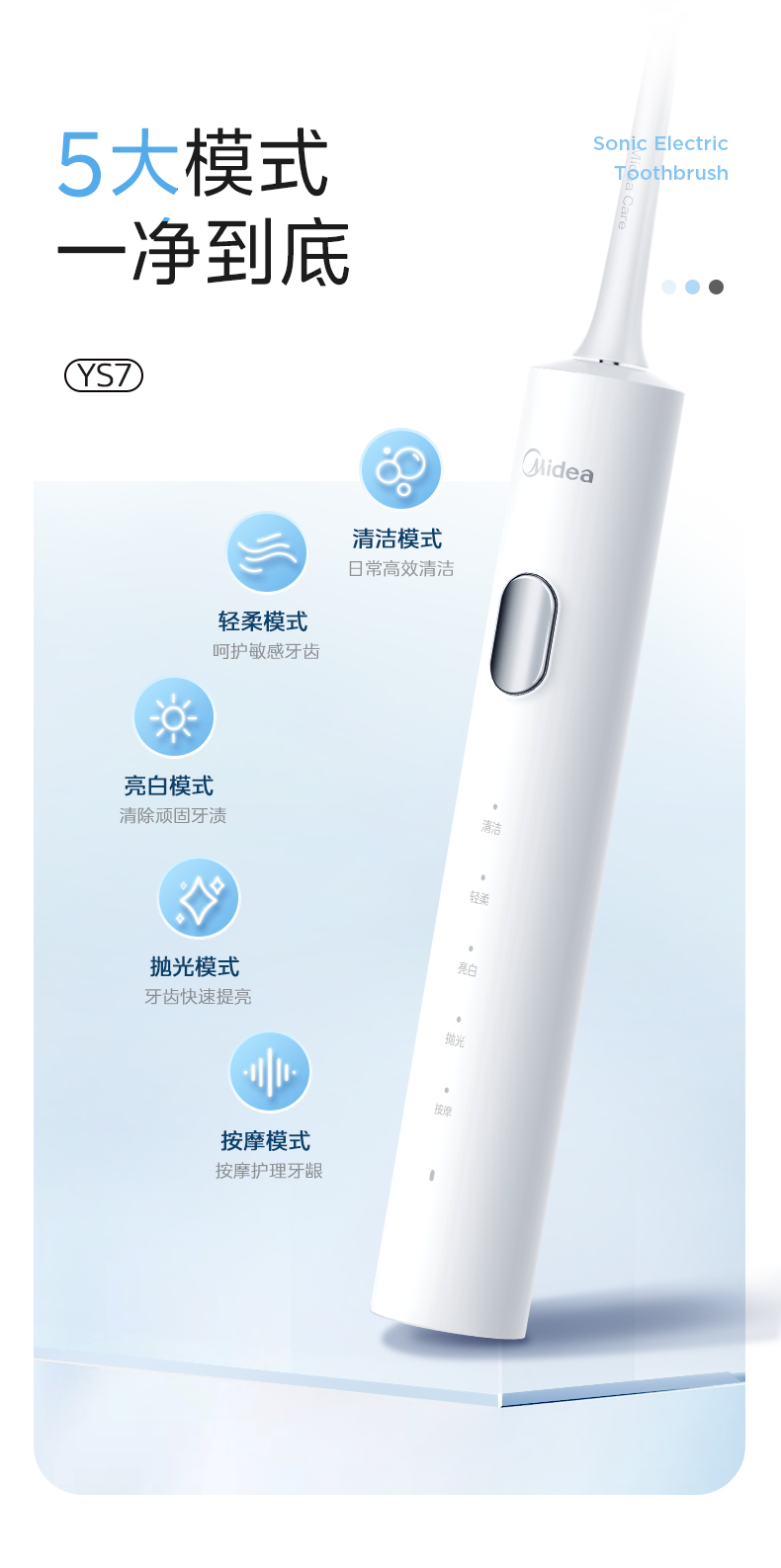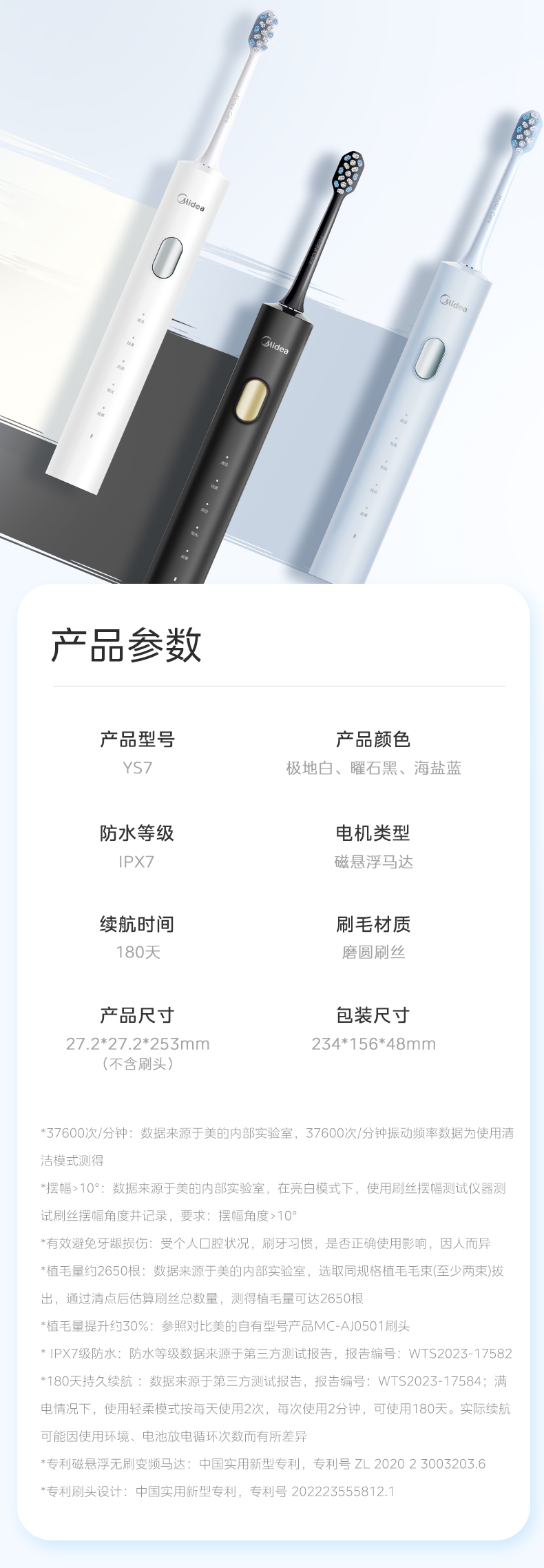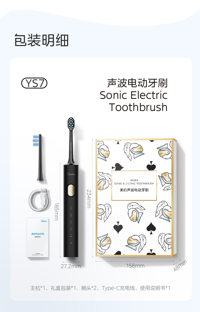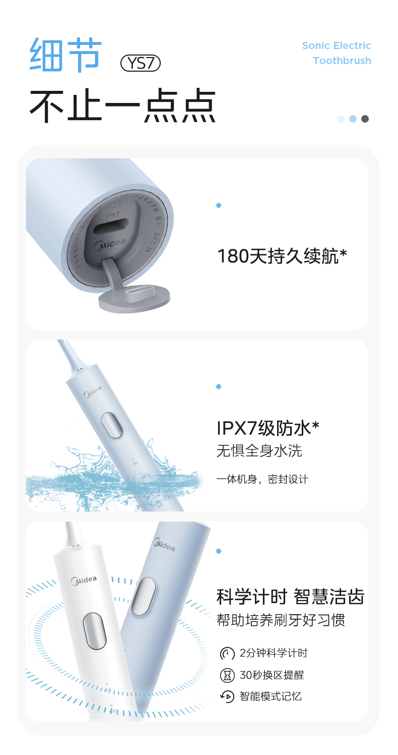 美的(Midea) YS7 180天续航 杜邦刷毛电动牙刷 白色(单位:台)
