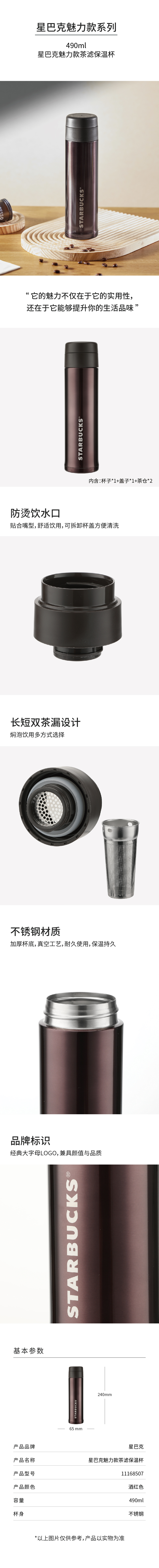星巴克(Starbucks) 11168507 490ml 魅力款茶滤保温杯 深咖啡(单位:个)