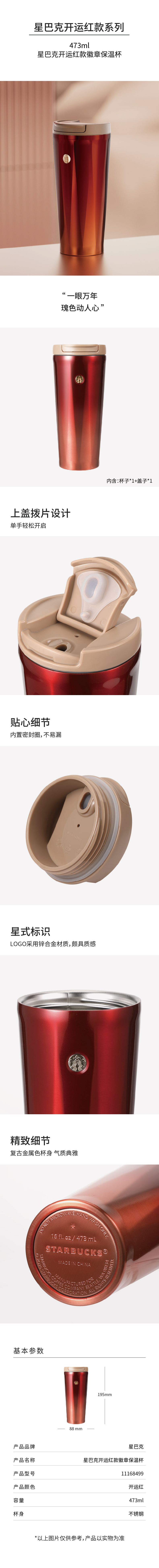 星巴克(Starbucks) 11168499 473ml 徽章保温杯 开运红色(单位:个)