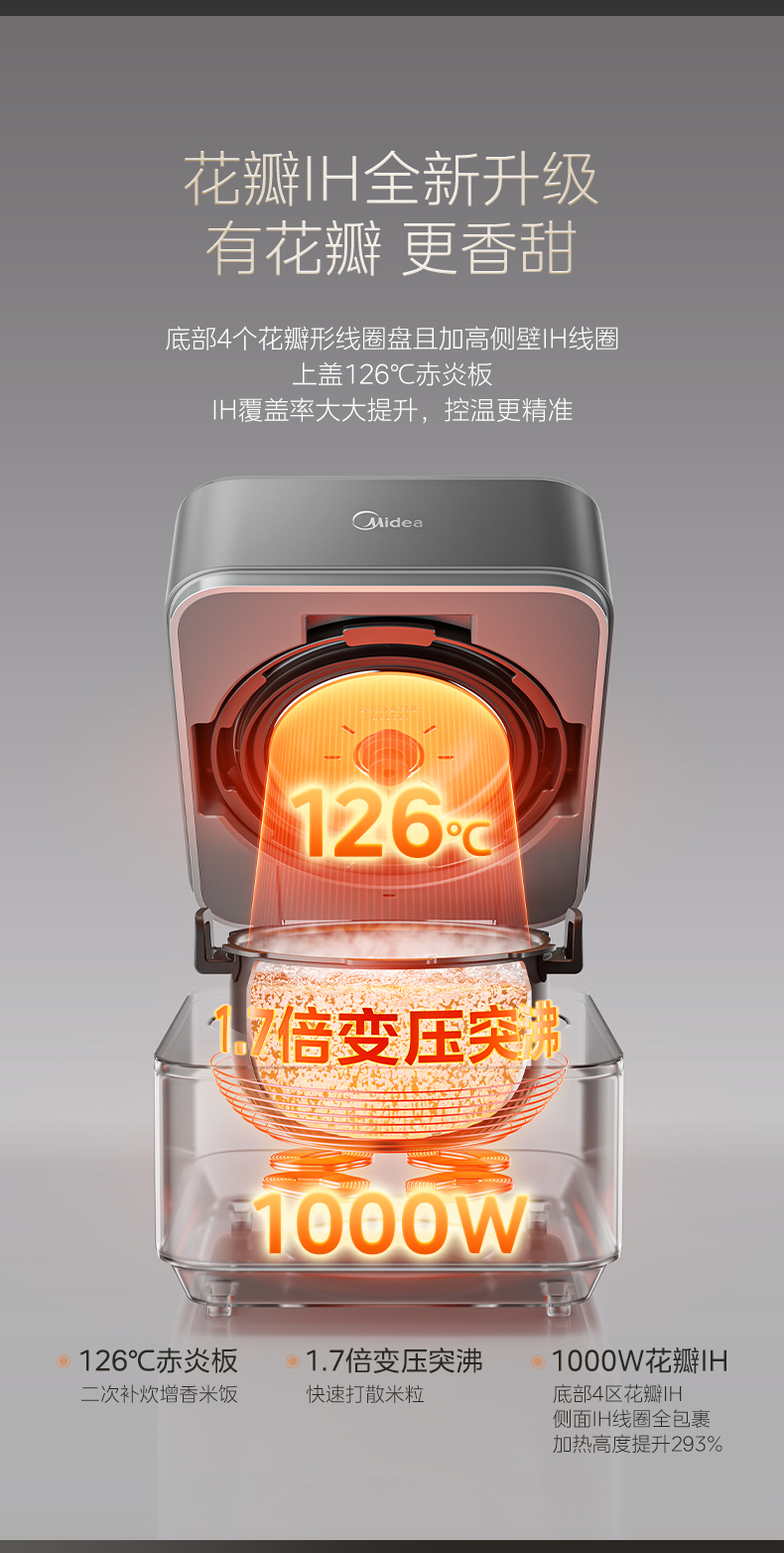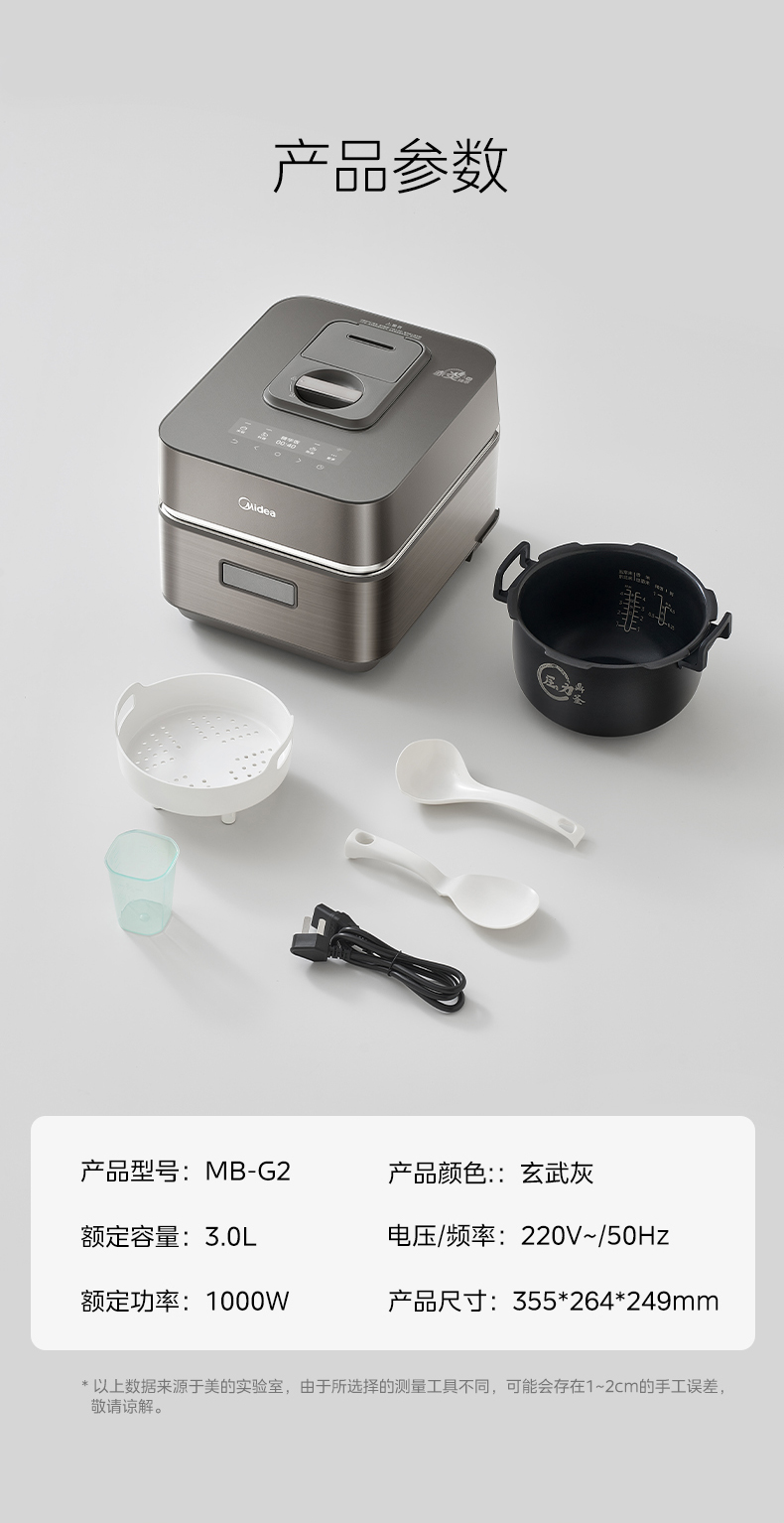 美的(Midea) MB-G2 3L 花瓣IH压力锅电饭煲 灰色(单位:台)